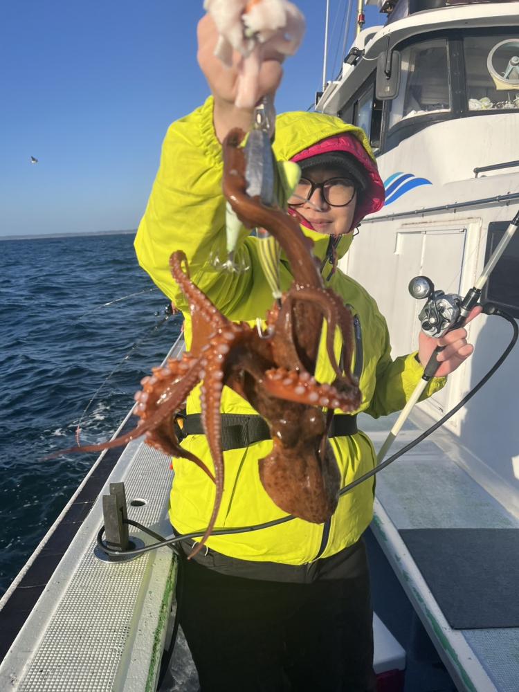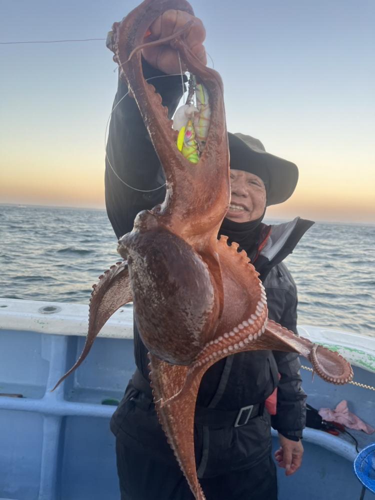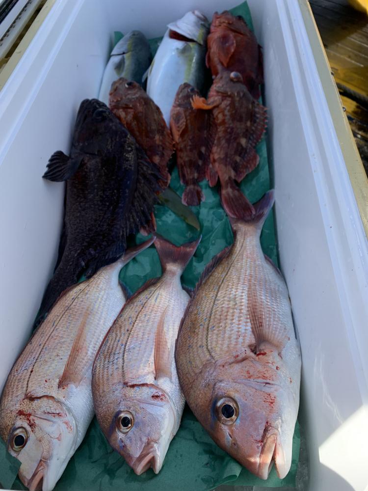 朝から若干風も目立ちウネリもついて釣りにくい状態でしたがポツリポツリと船内平均して掛かり出しました。