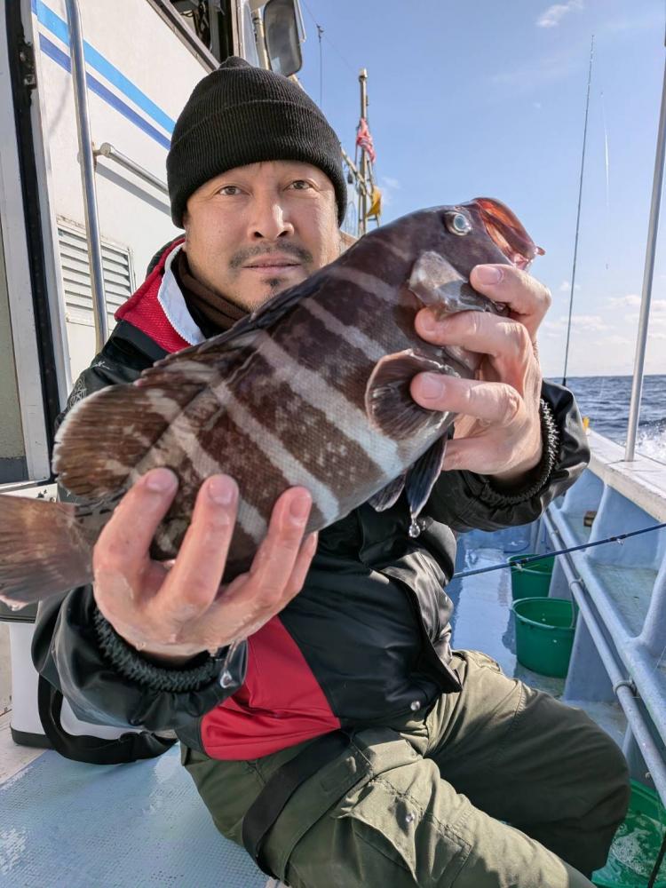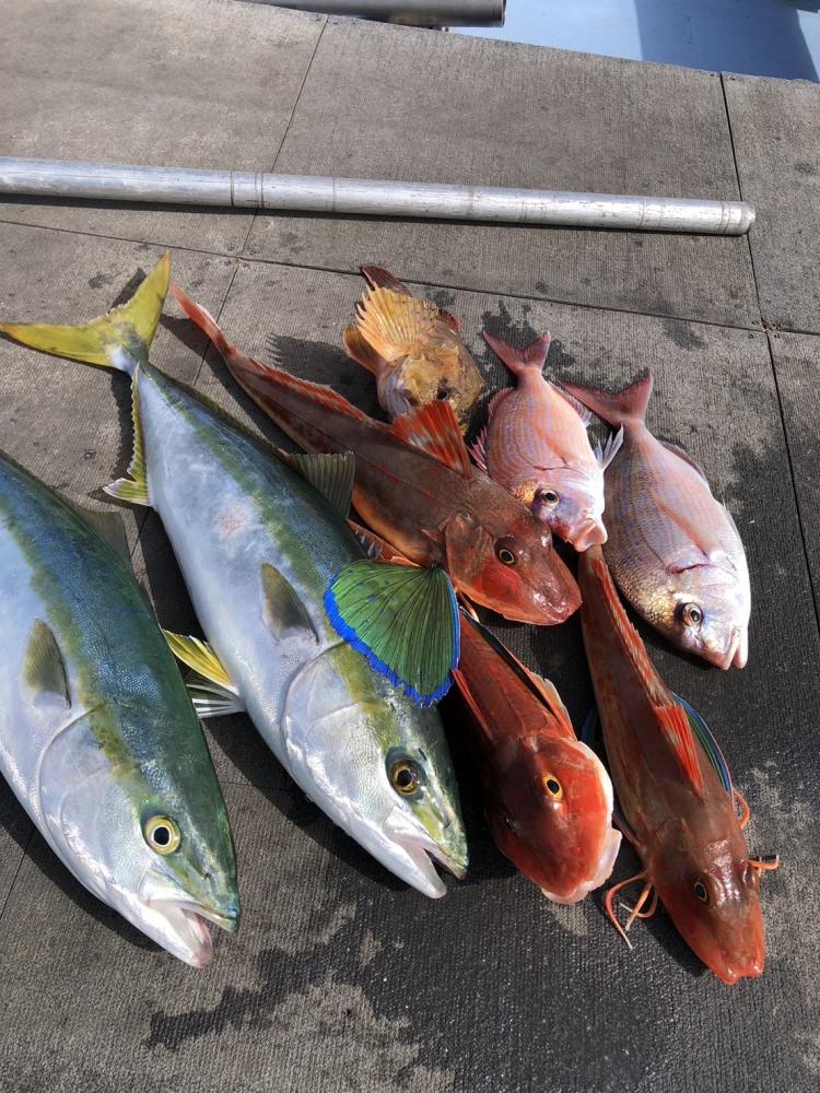 北沖30−50m前後を狙いましたが、ウネリ猛烈に高く苦戦(泣)良型のヒラメやメバル、マトウダイ、イナダ、ホウボウ等のゲストはアタリ少なくも適当に拾えたのでお土産になりました。