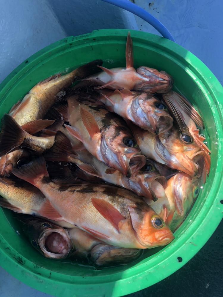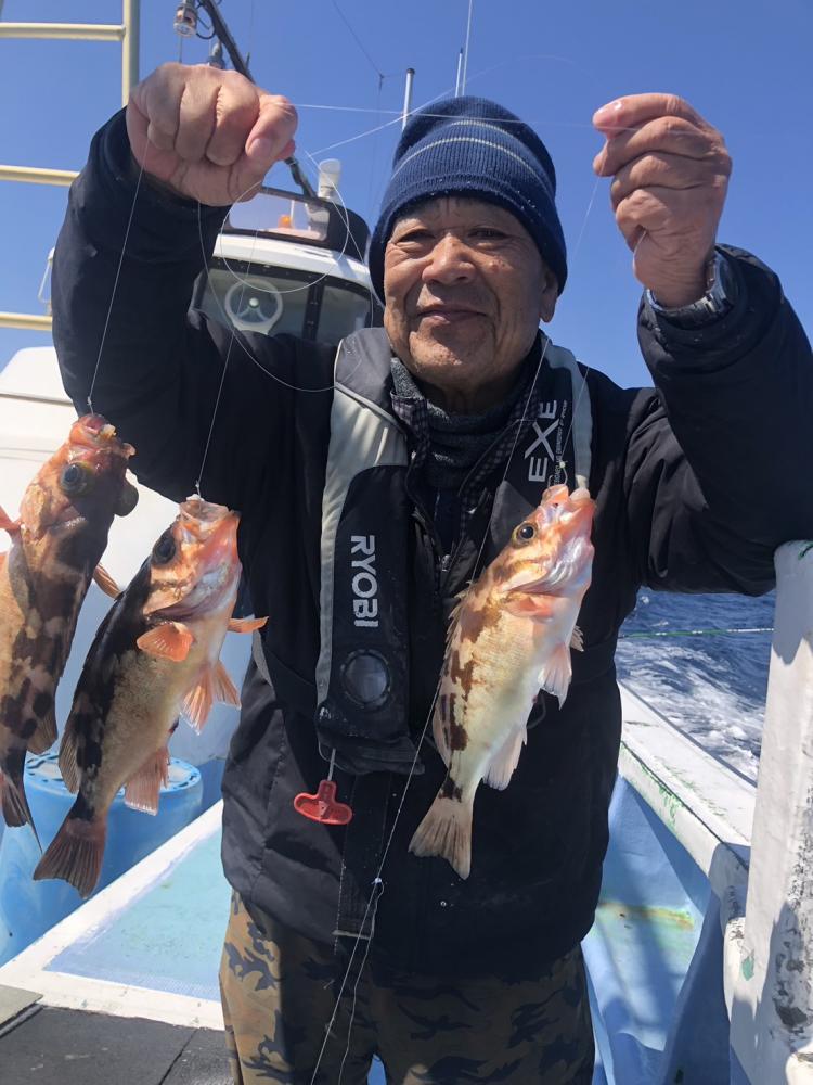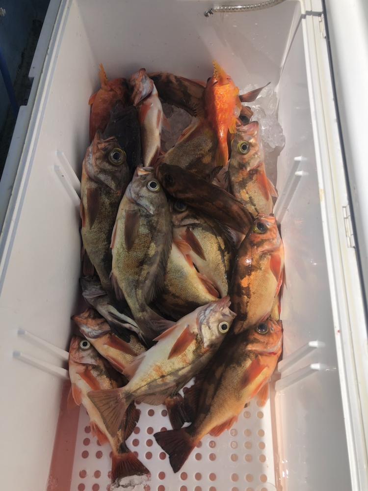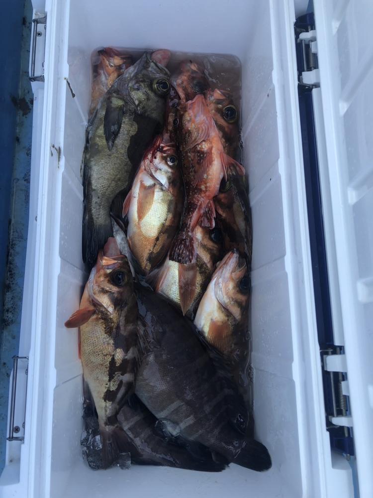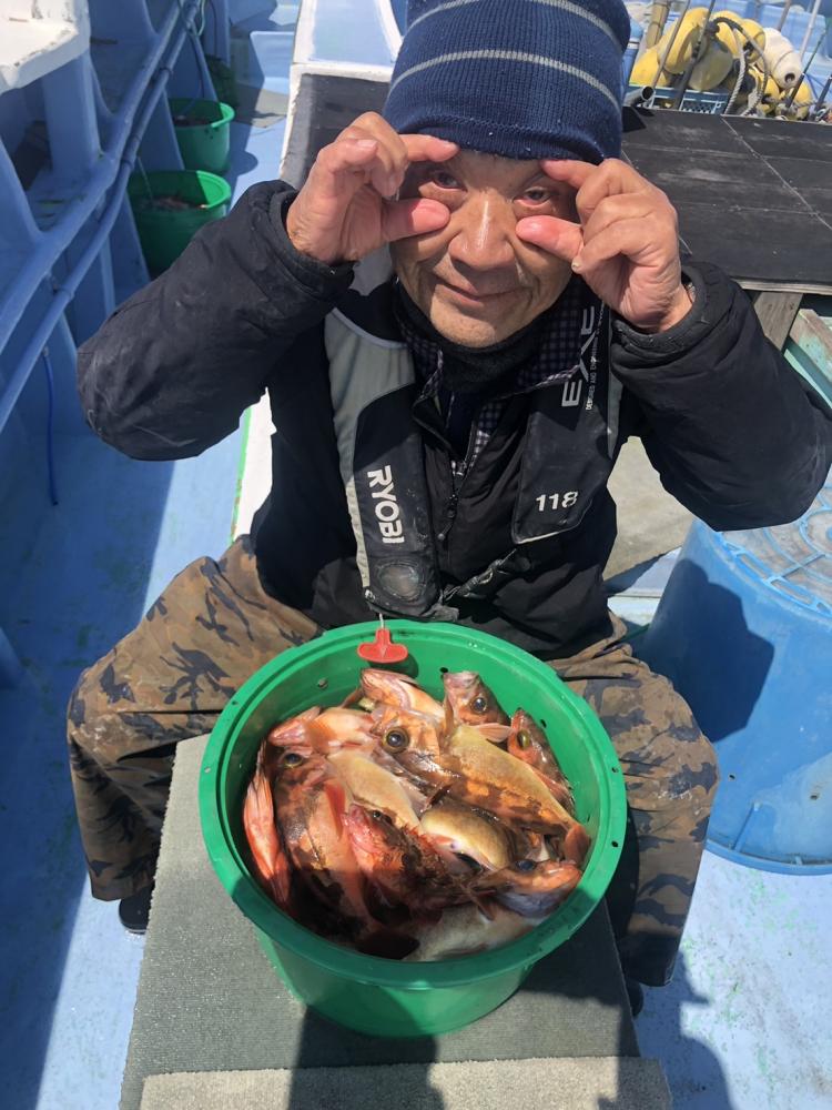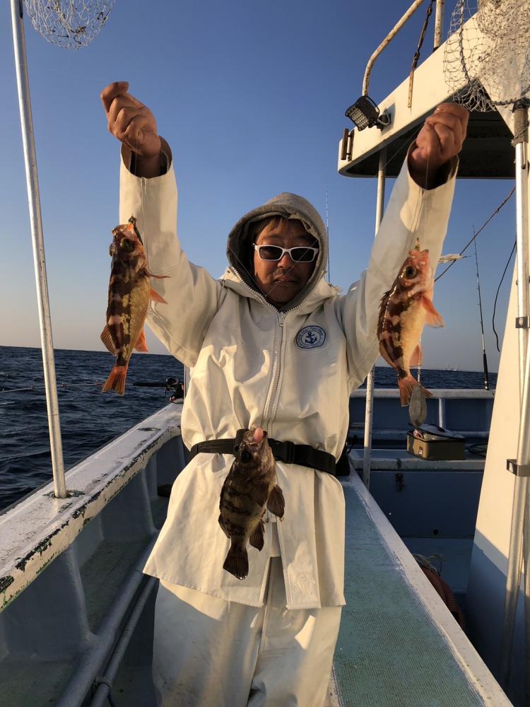 カサゴ!フグ、ホウボウなどのゲストもポツリポツリと混じりましたがこれで終わりかと思ったら、後半に港近くで食い活発!良型ラッシュでした!