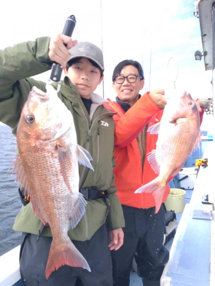 今日は潮流れ緩くもパターン合う人は良型ヒット!!船内最年少のお客様も良型マダイ無事ゲットです!ゲストにはイナダ、フグ、カサゴ、ヒラメ、ワラサ、カンダイと魚種多彩で楽しめました♪