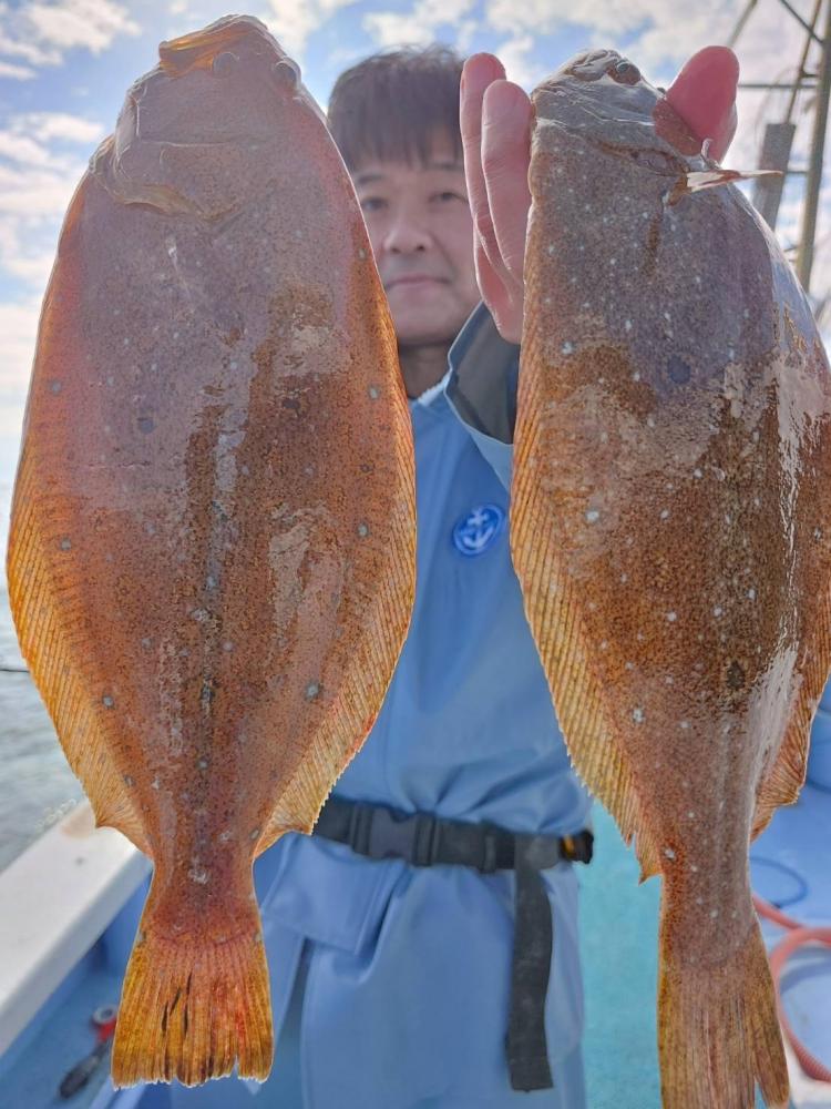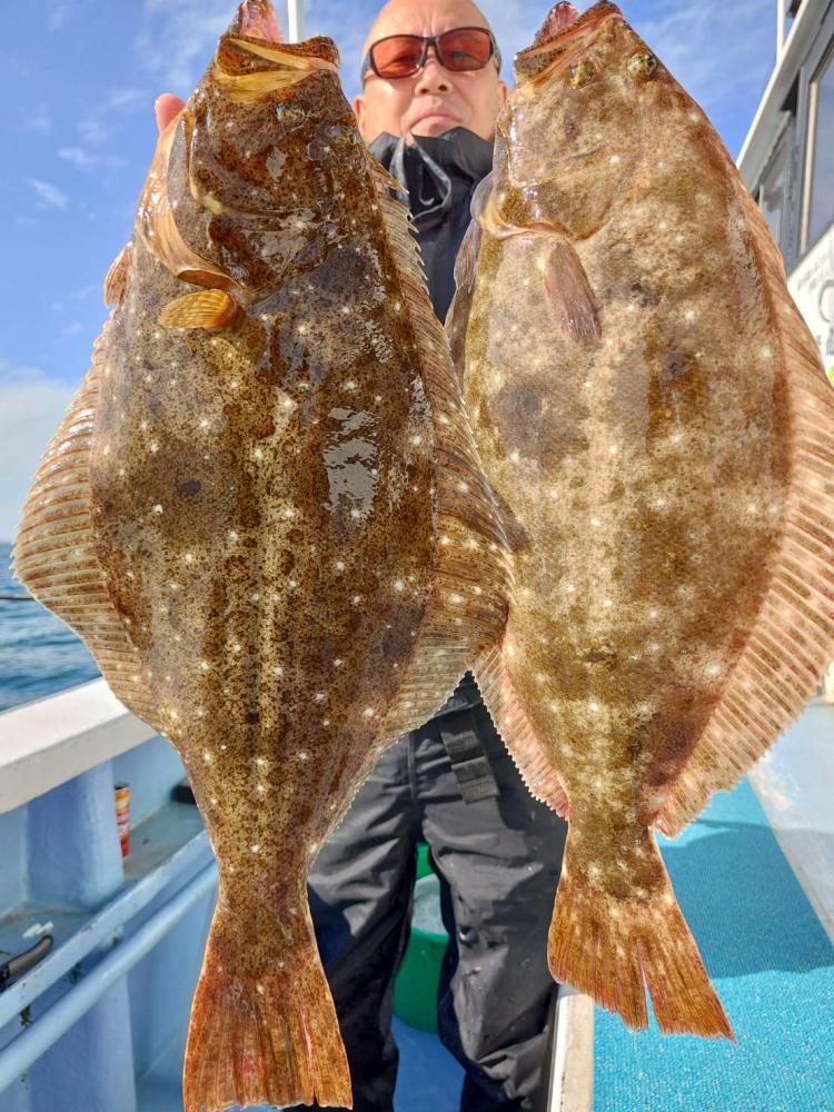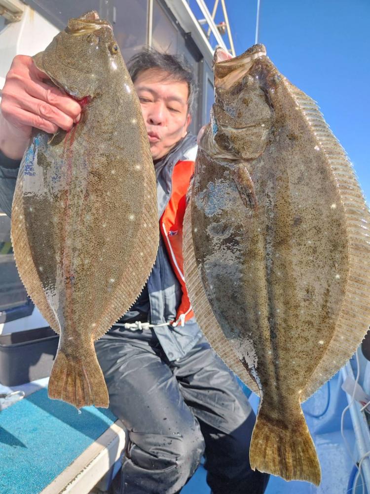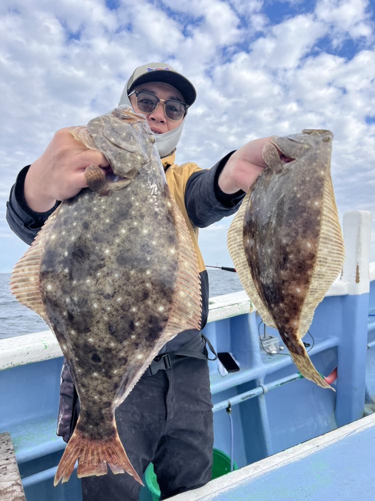 今日は風とウネリあって釣りにくく前半は食い渋く苦戦するも後半に潮が変わったのかヒラメの活性よくいきなりバタバタ掛かり出しました!