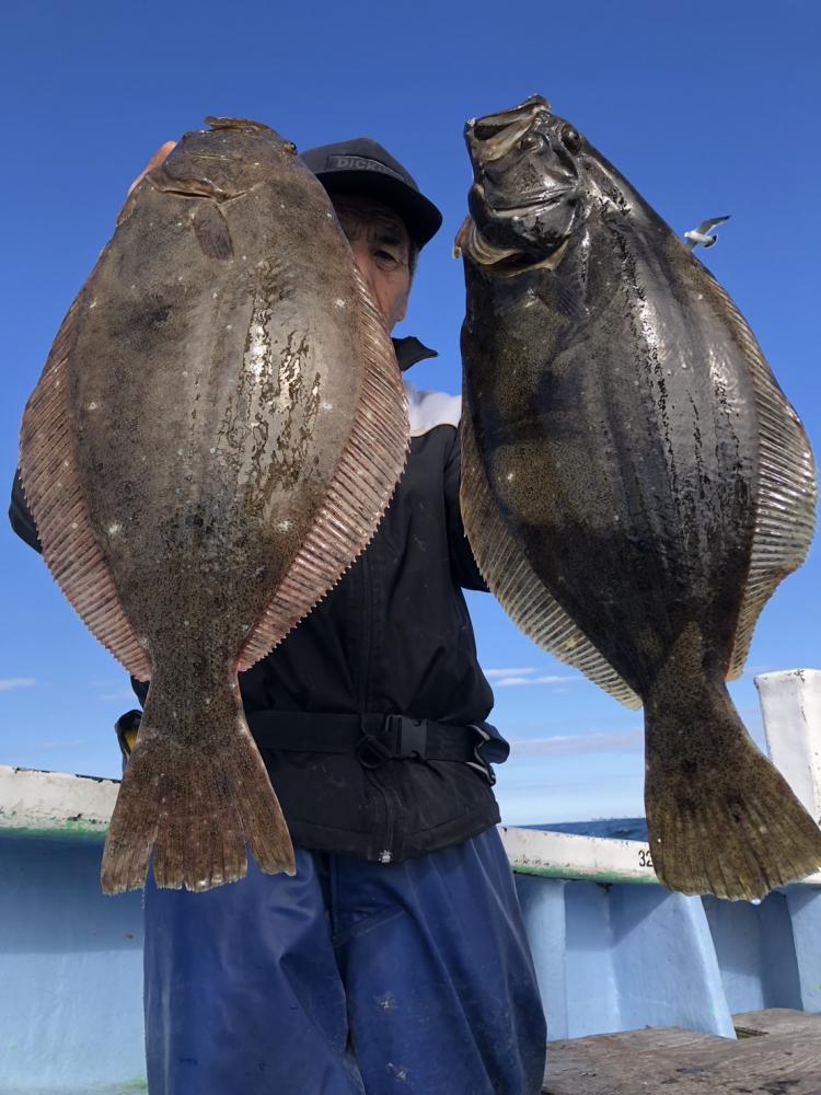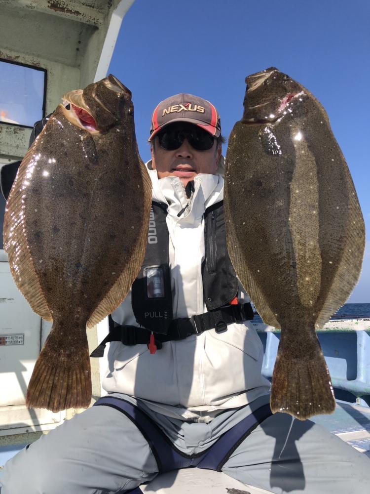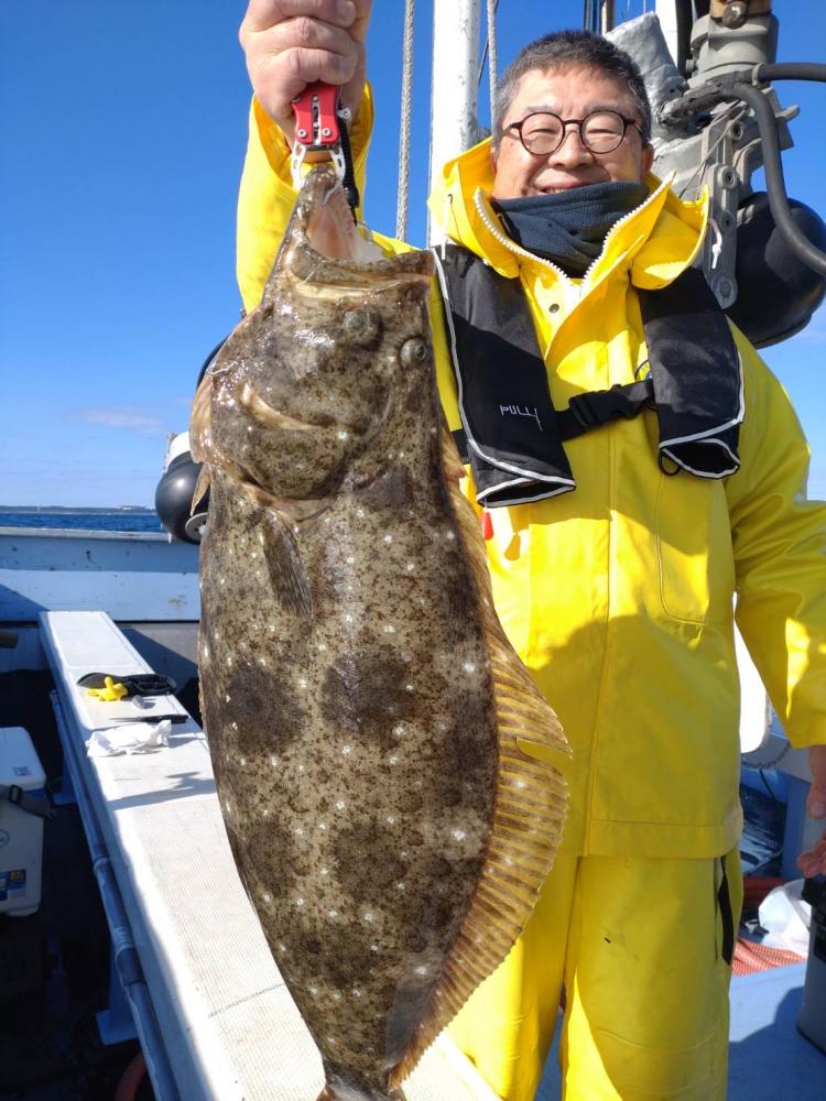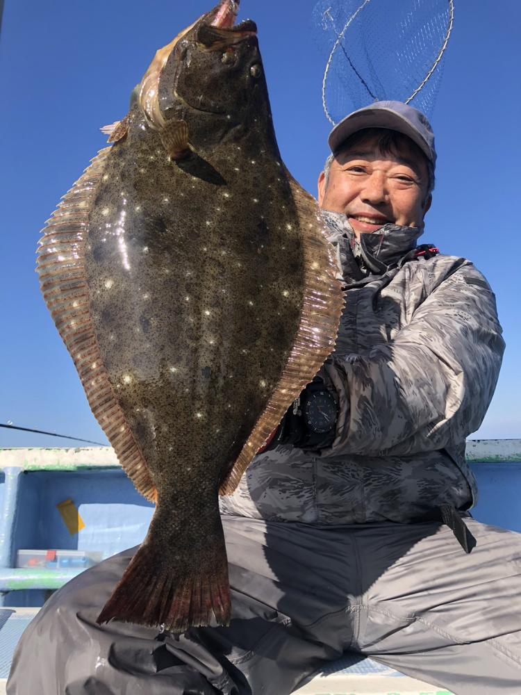 今日はウネリ高く底取りしづらいもののヒラメのアタリはポツリポツリとあり無事ヒラメ全員ゲット!!