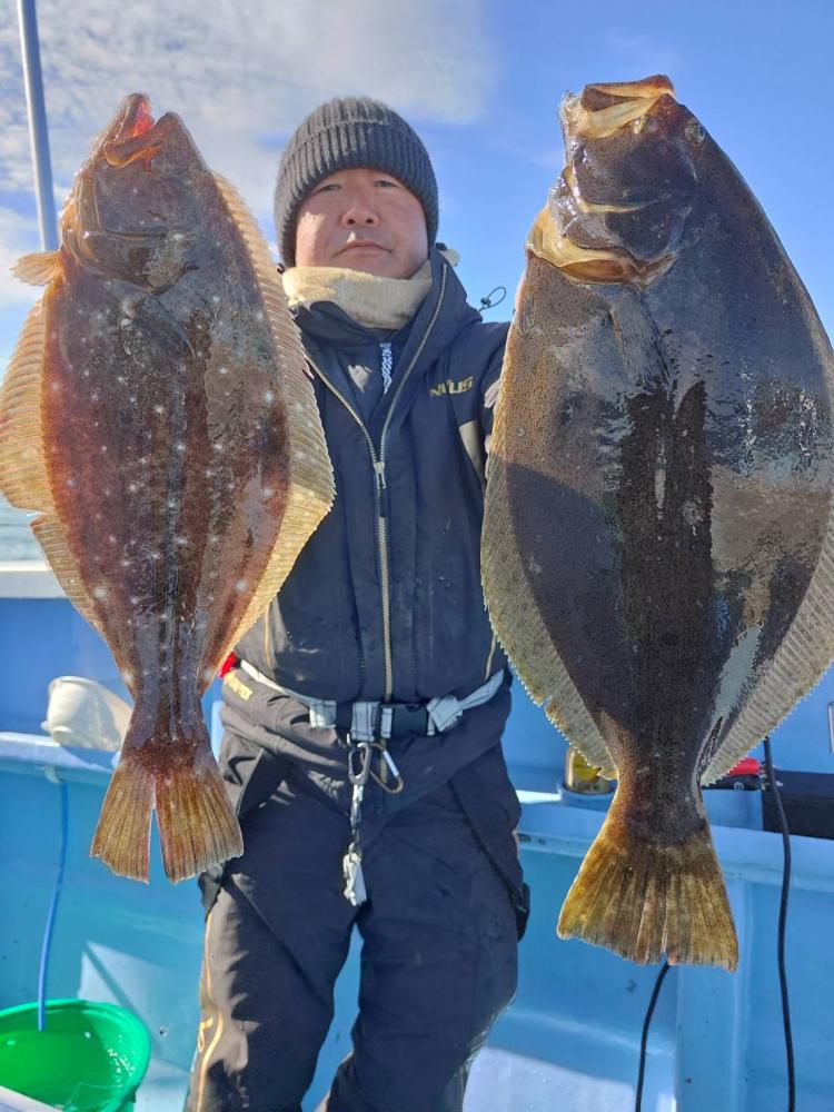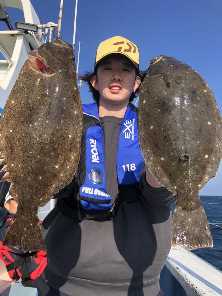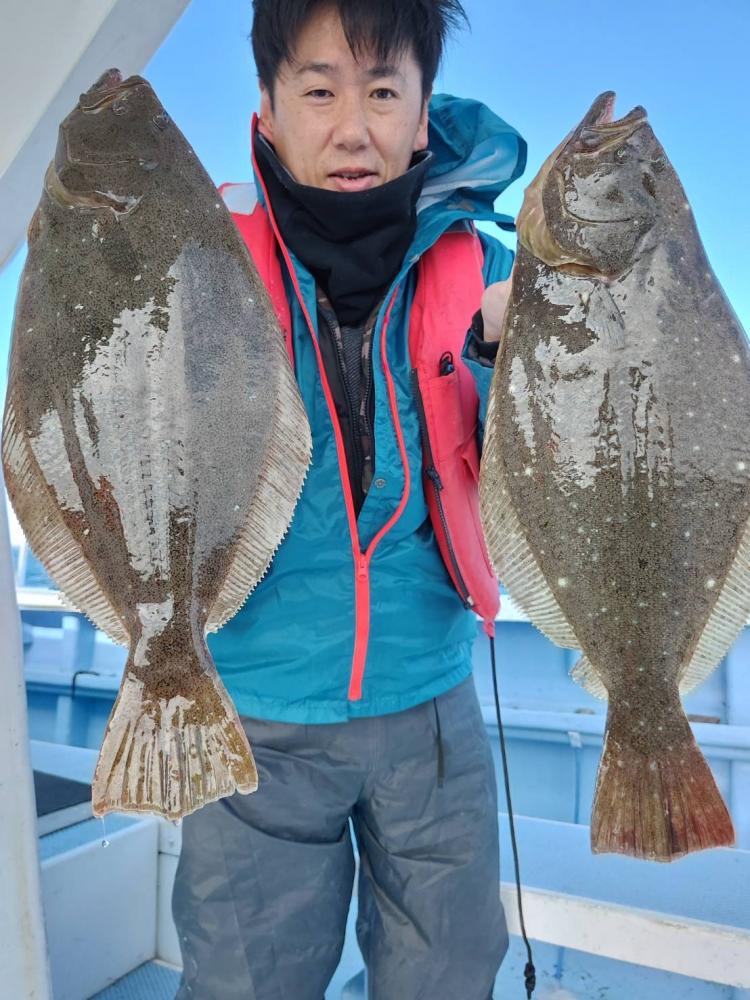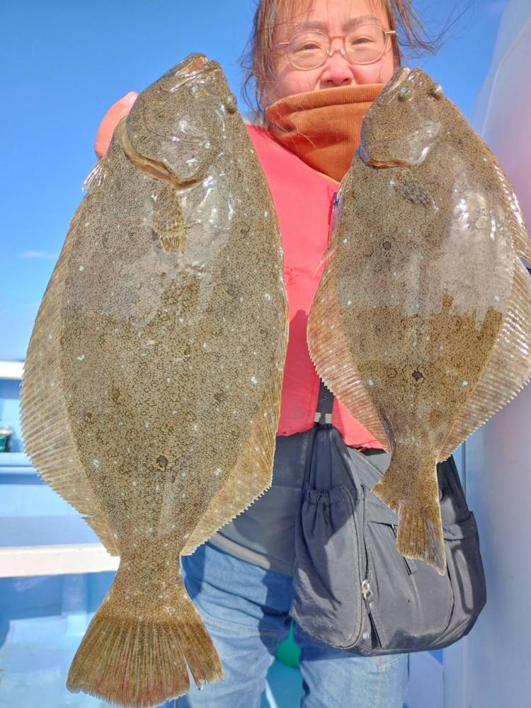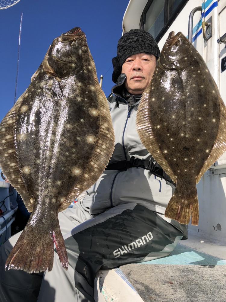 今日はウネリ高く底取りしづらいもののヒラメのアタリはポツリポツリとあり無事ヒラメ全員ゲット!!