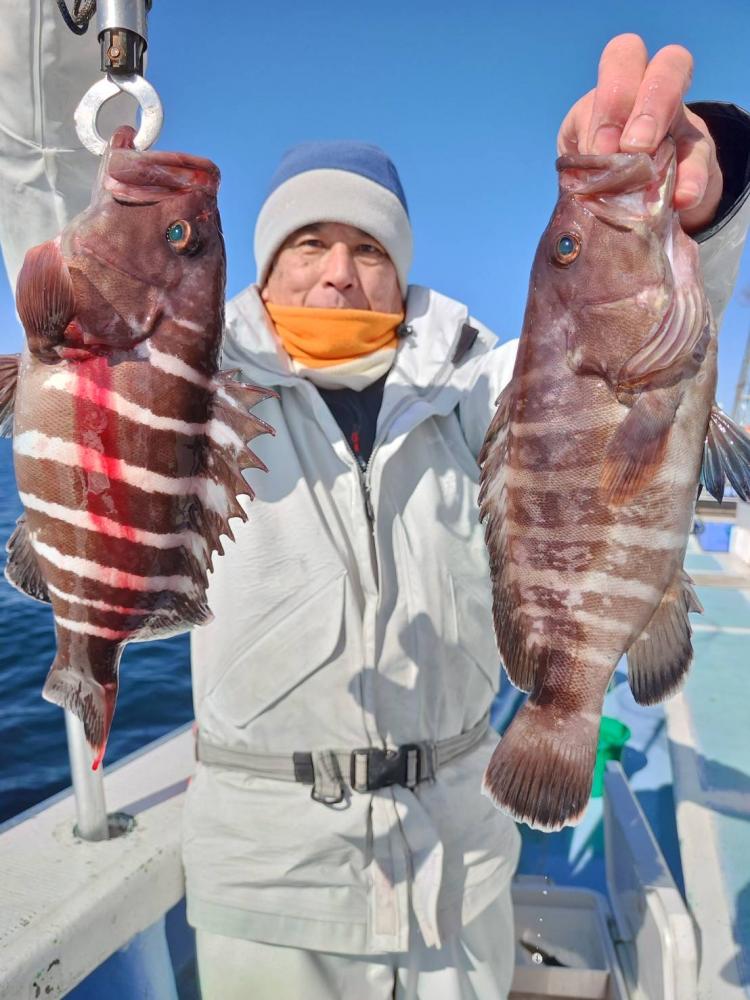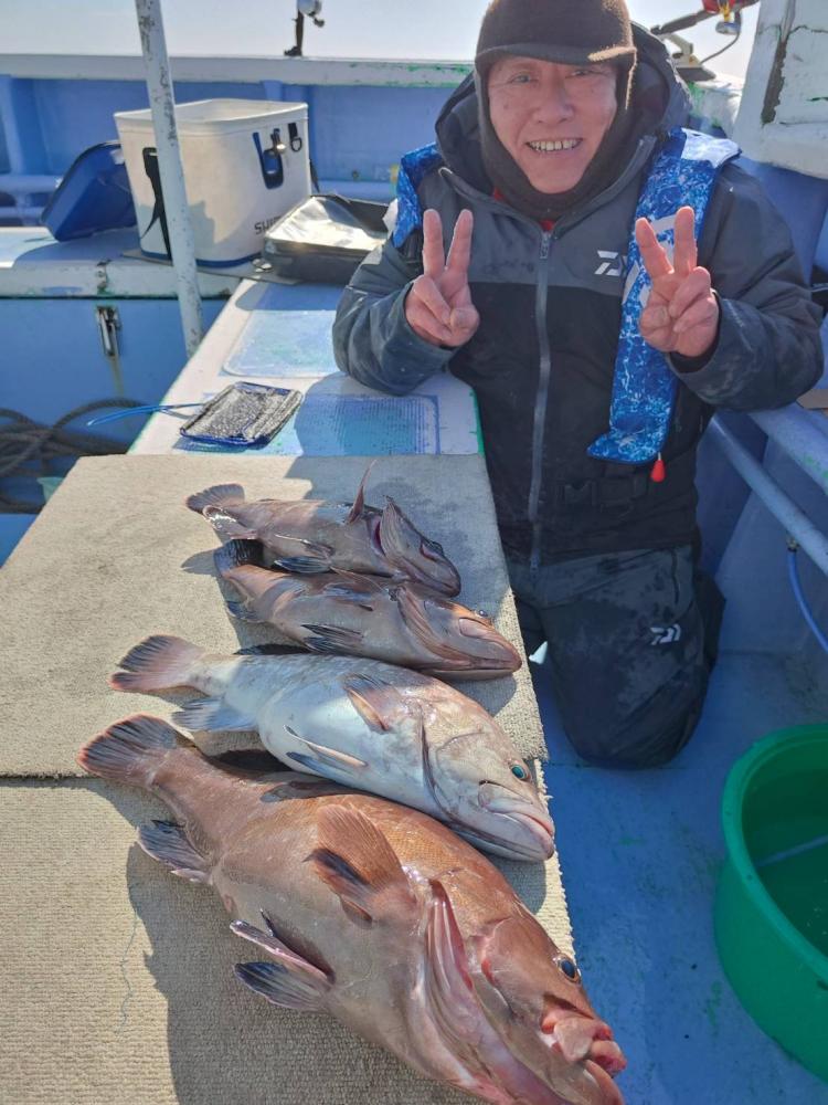 今日は朝から潮流れ程よくアタリもポツポツとあって全員本命GET!!船内平均してよく棚の合う人は続けて掛かったりと楽しめました♪