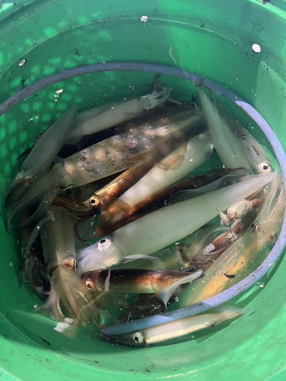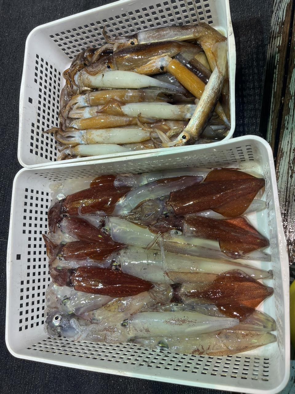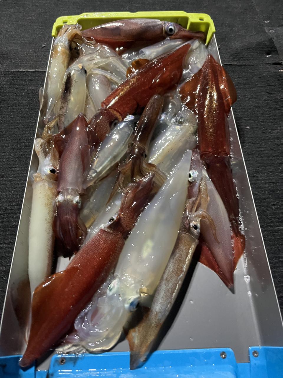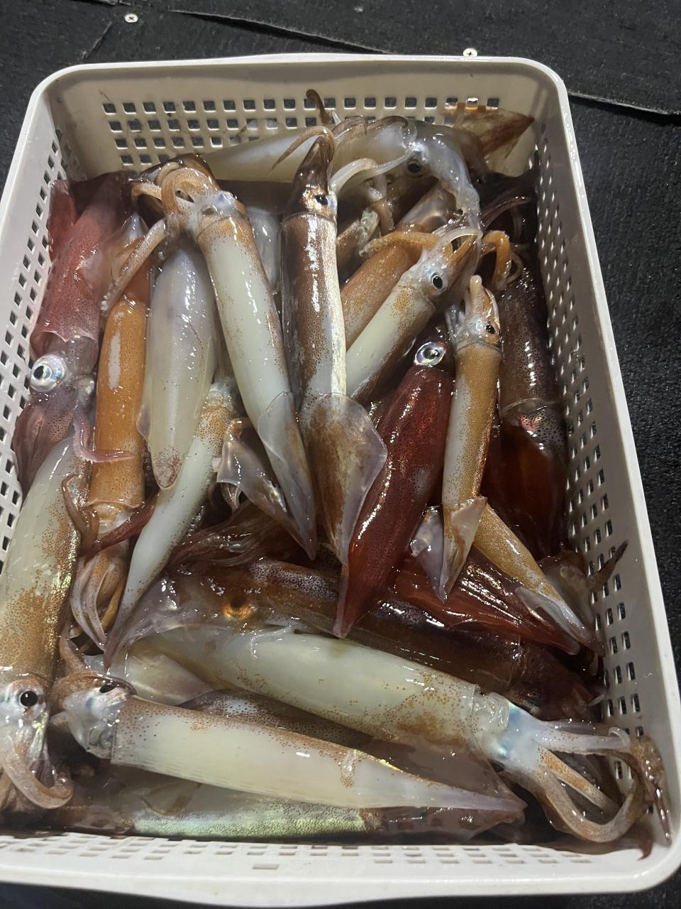 今日は1日通して潮流れよくポツポツと掛かり始め、誘いのあっている人はほぼ間を空けずに掛けるような勢いでしたね。良型混じり最大サイズに近い型も複数見れました!!