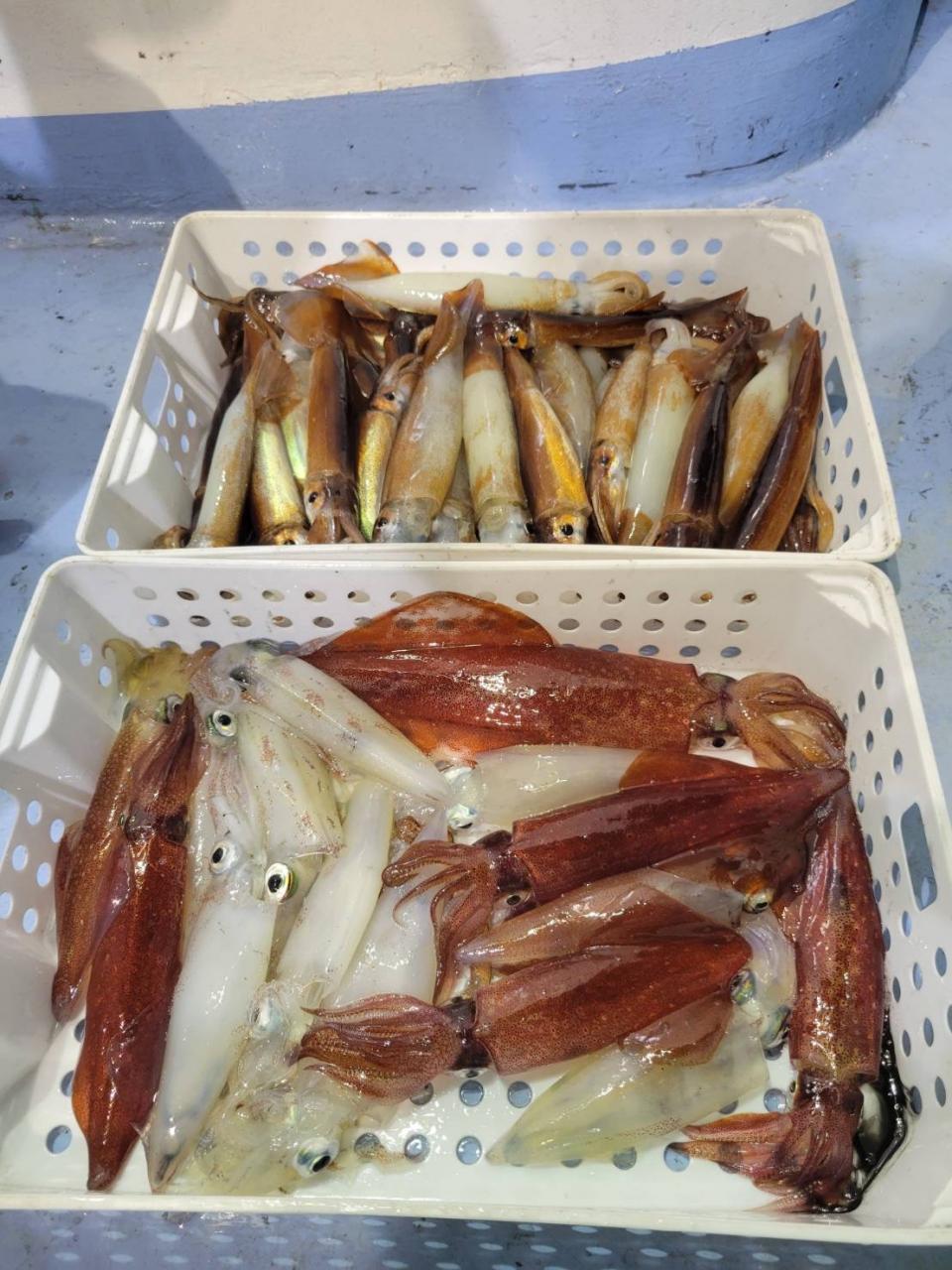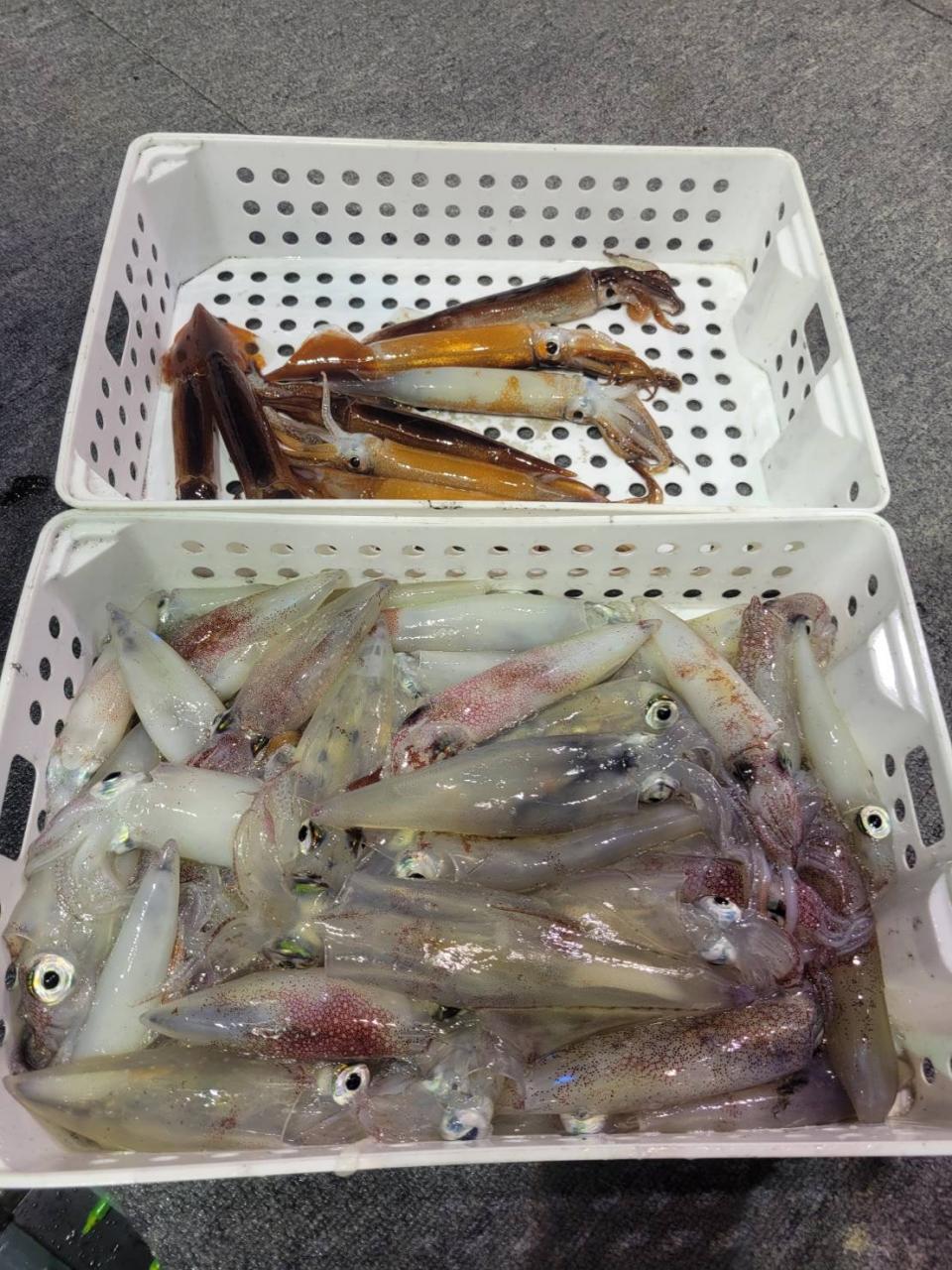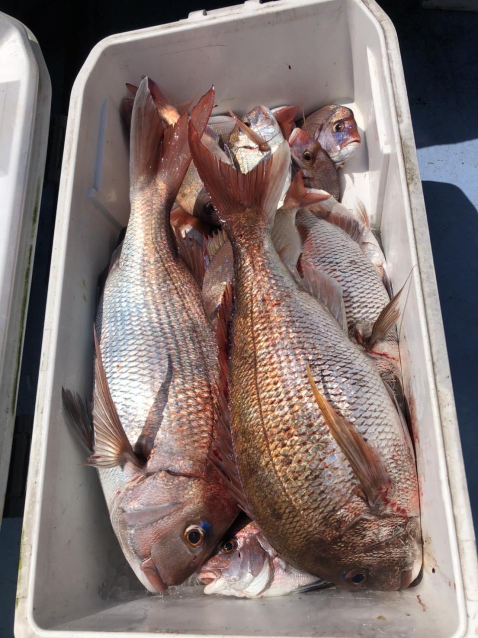 今日は1日通して潮流れよくポツポツと掛かり始め、誘いのあっている人はほぼ間を空けずに掛けるような勢いでしたね。良型混じり最大サイズに近い型も複数見れました!!