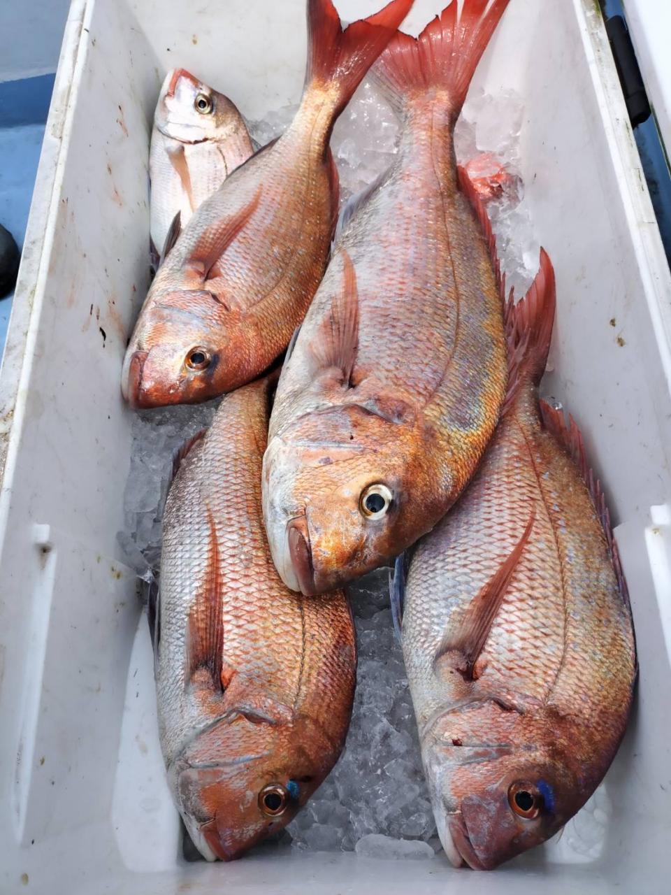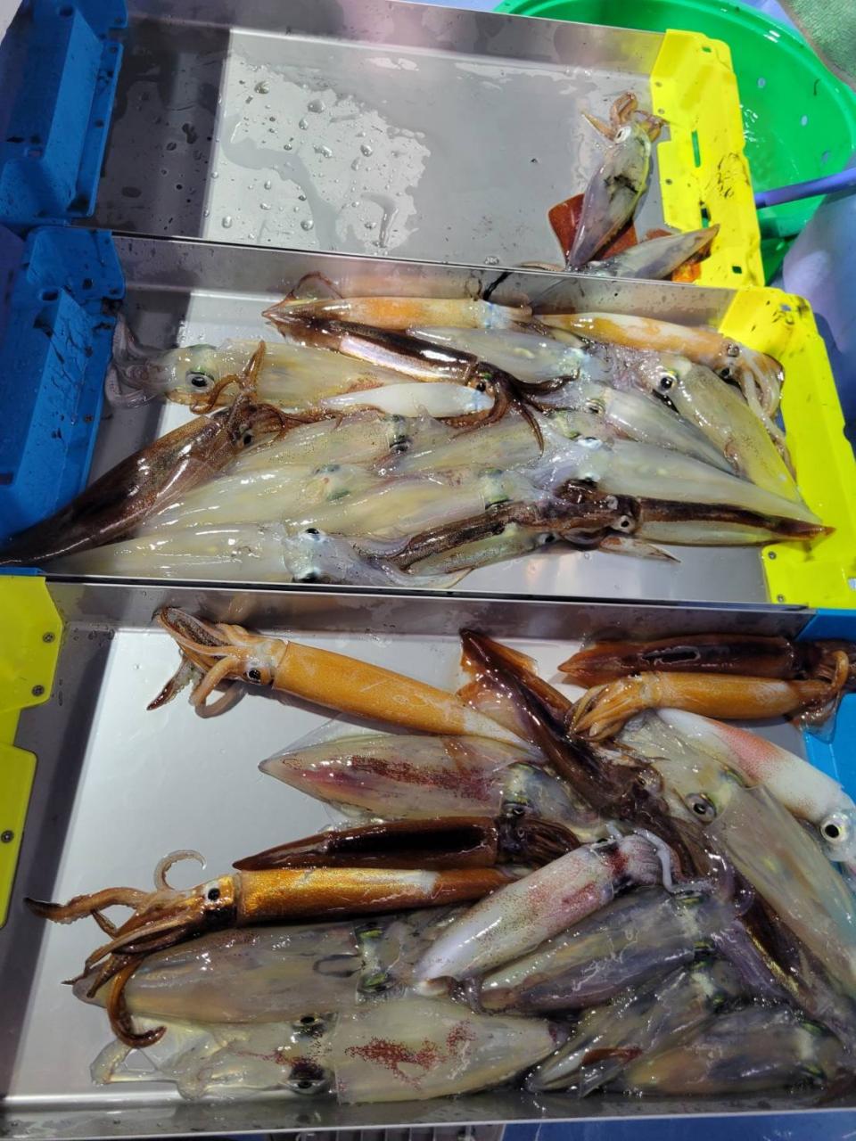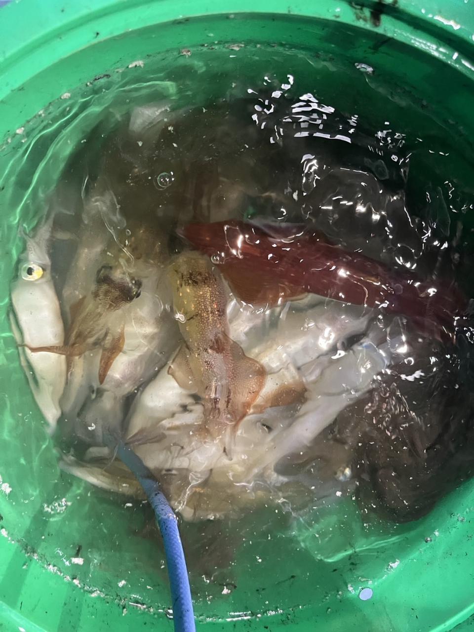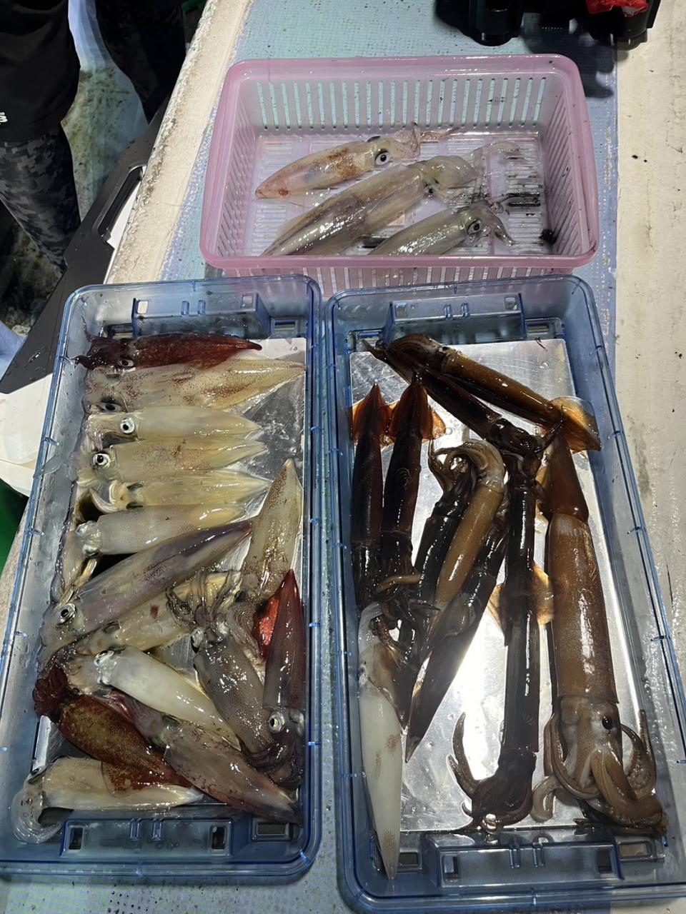 今日は1日通して潮流れよくポツポツと掛かり始め、誘いのあっている人はほぼ間を空けずに掛けるような勢いでしたね。良型混じり最大サイズに近い型も複数見れました!!