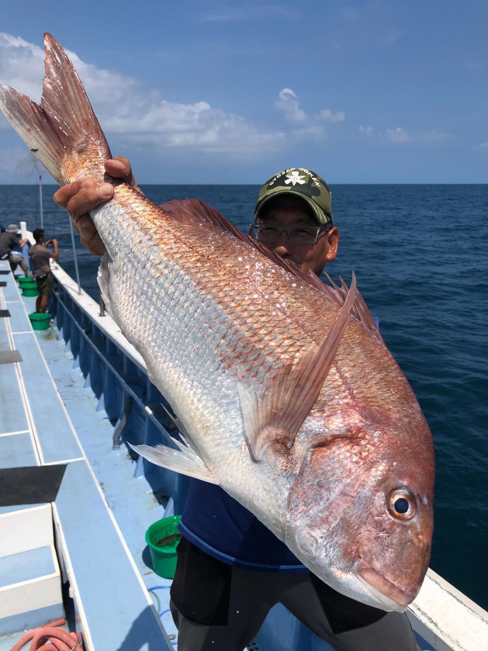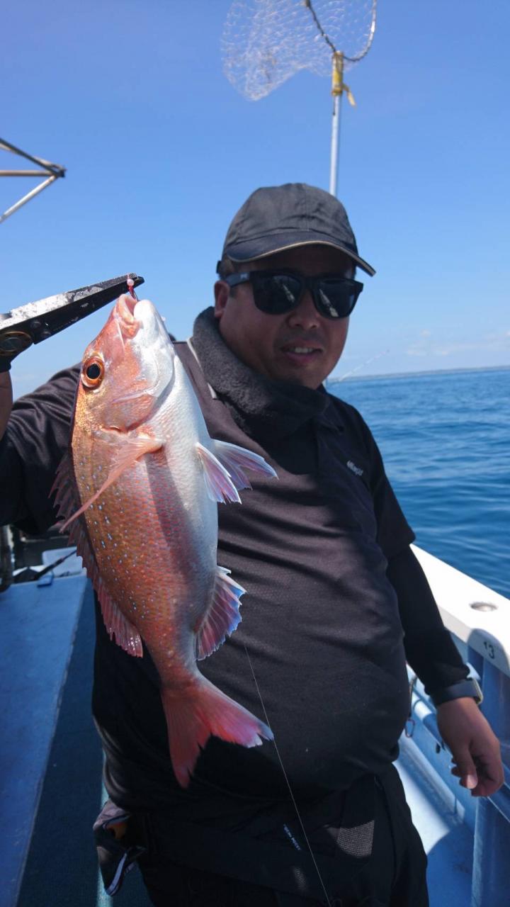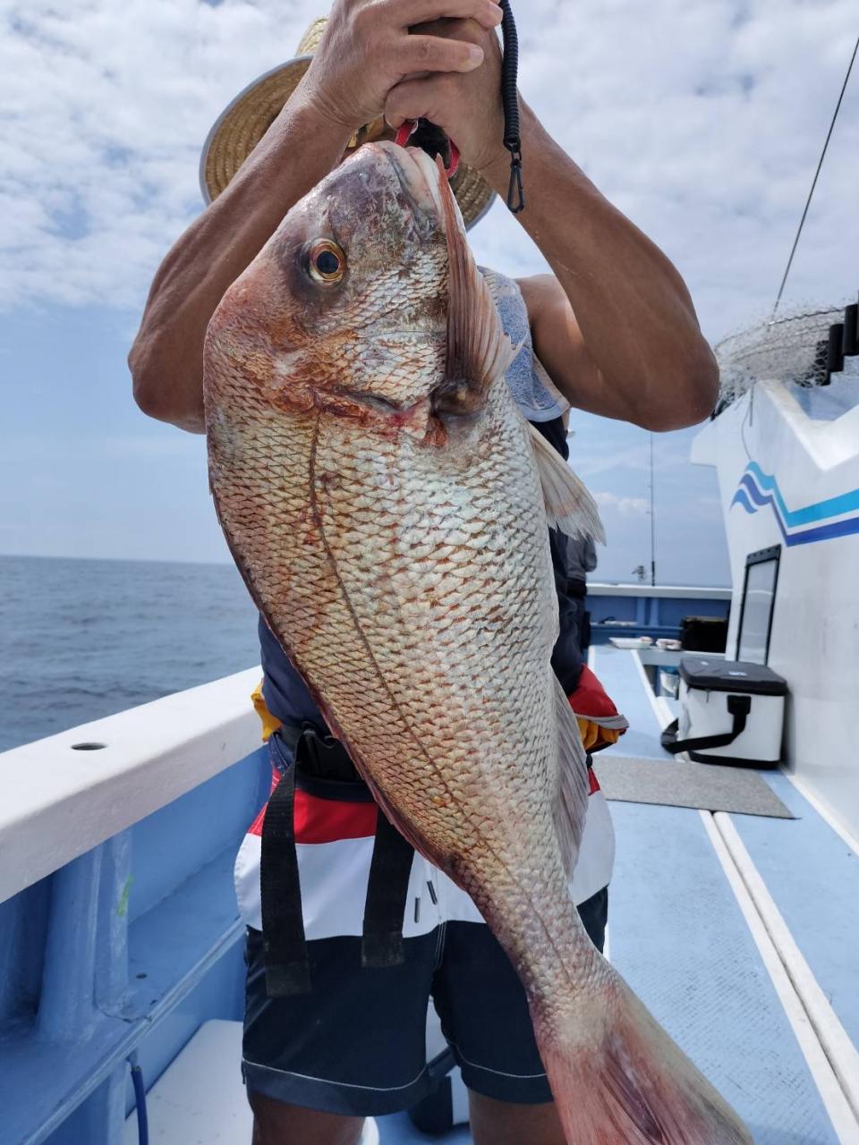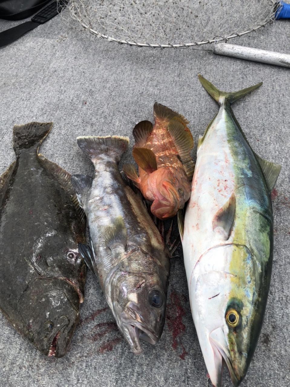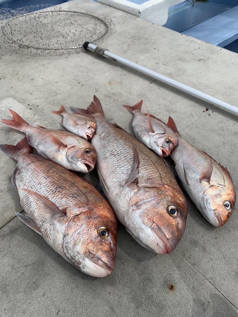 今日は風と波もあって釣りにくい状況ではありましたがポツリポツリとアタリもあり、本命マダイをはじめ他ハナダイ、カサゴ、フグ、イナダ、ヒラメなどのゲストも上がりました。