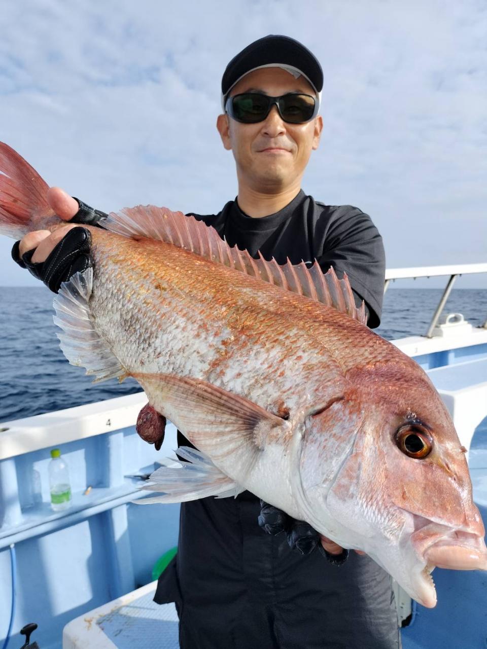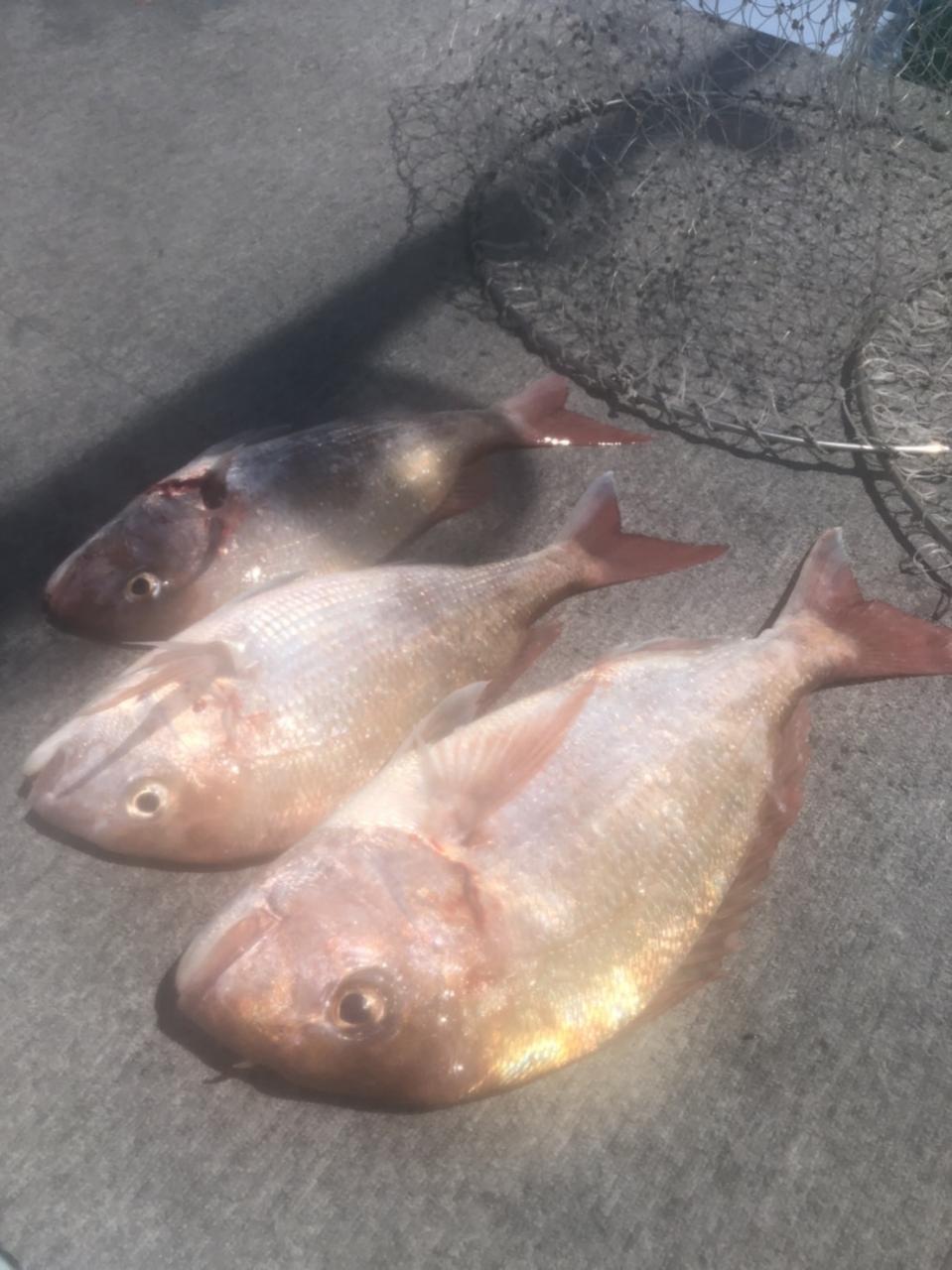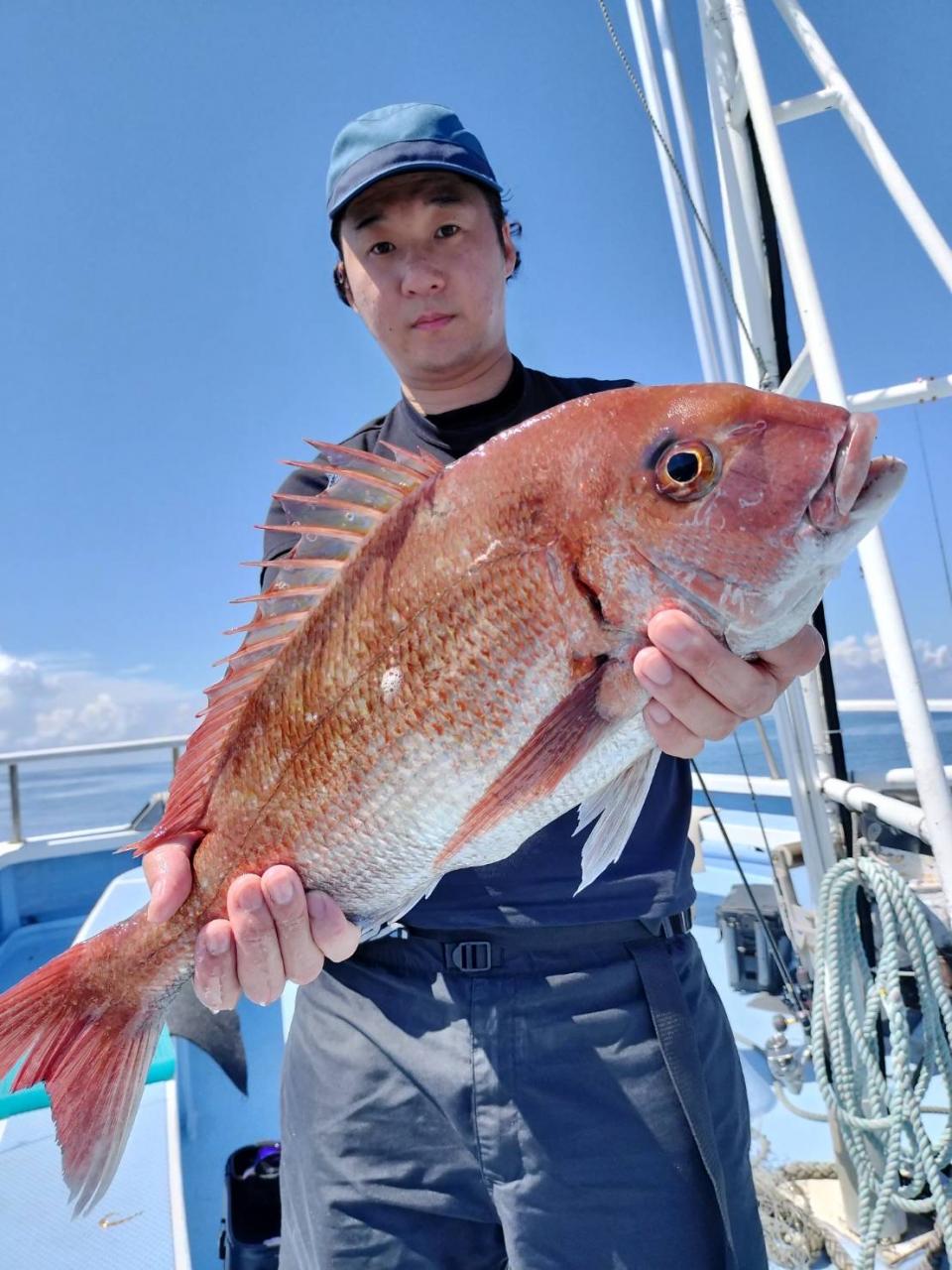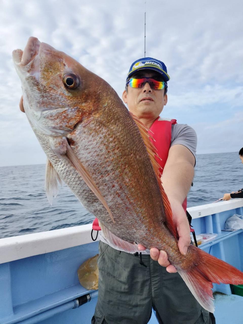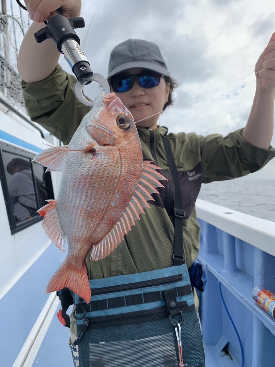 今日は風と波もあって釣りにくい状況ではありましたがポツリポツリとアタリもあり、本命マダイをはじめ他ハナダイ、カサゴ、フグ、イナダ、ヒラメなどのゲストも上がりました。