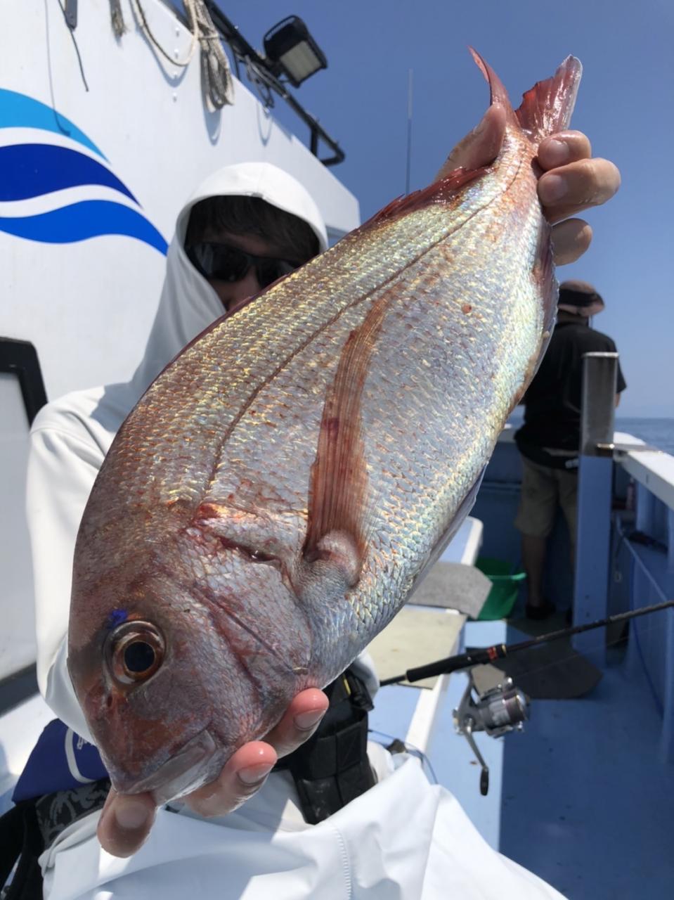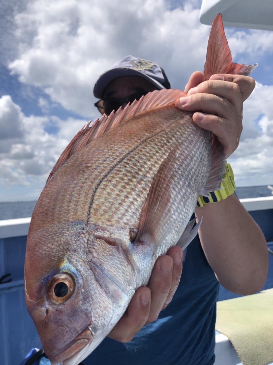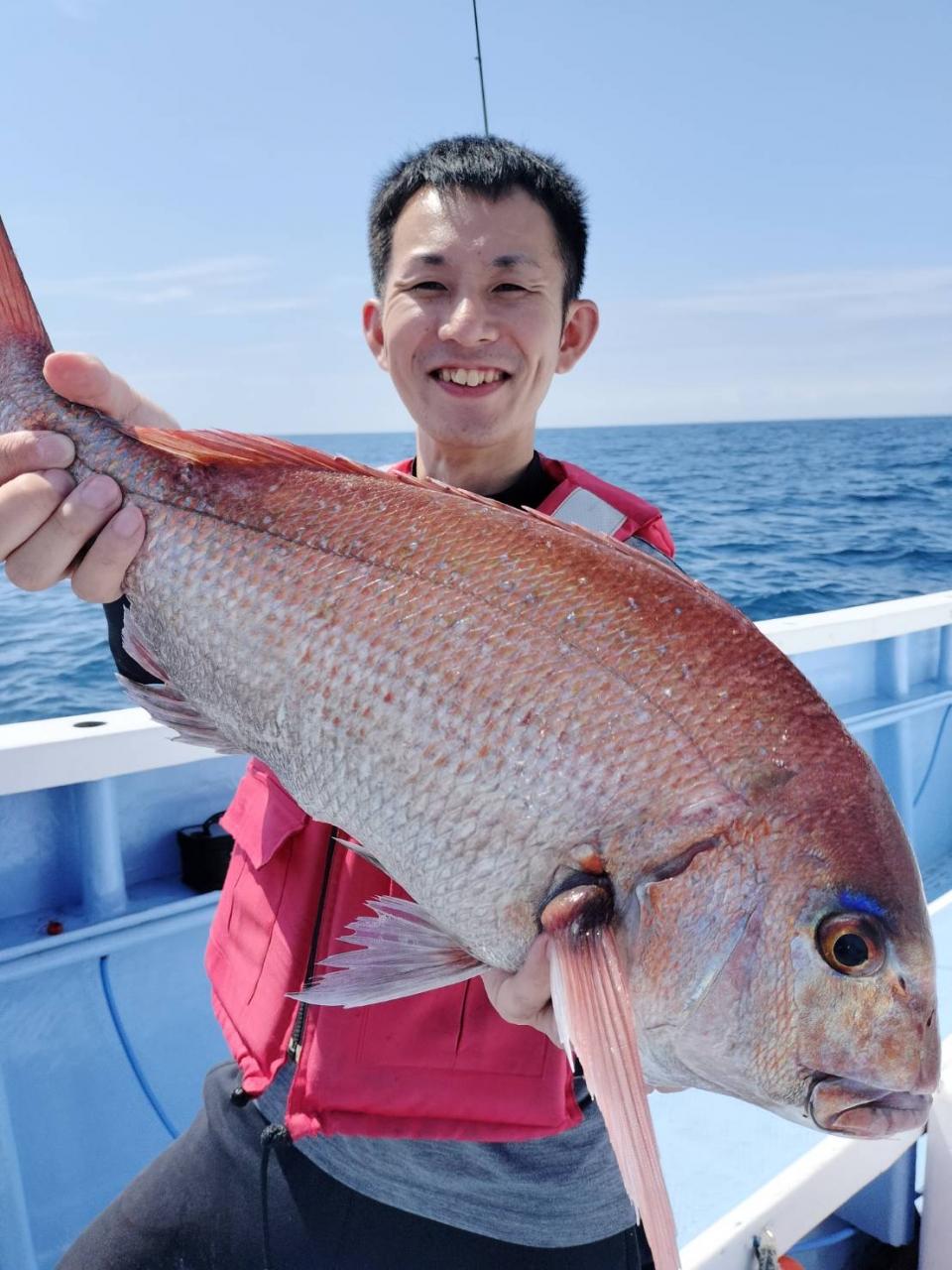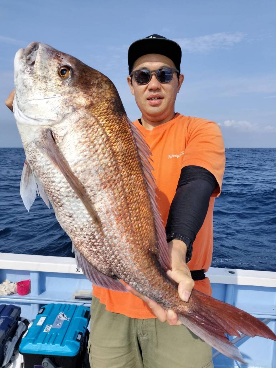 今日は風と波もあって釣りにくい状況ではありましたがポツリポツリとアタリもあり、本命マダイをはじめ他ハナダイ、カサゴ、フグ、イナダ、ヒラメなどのゲストも上がりました。