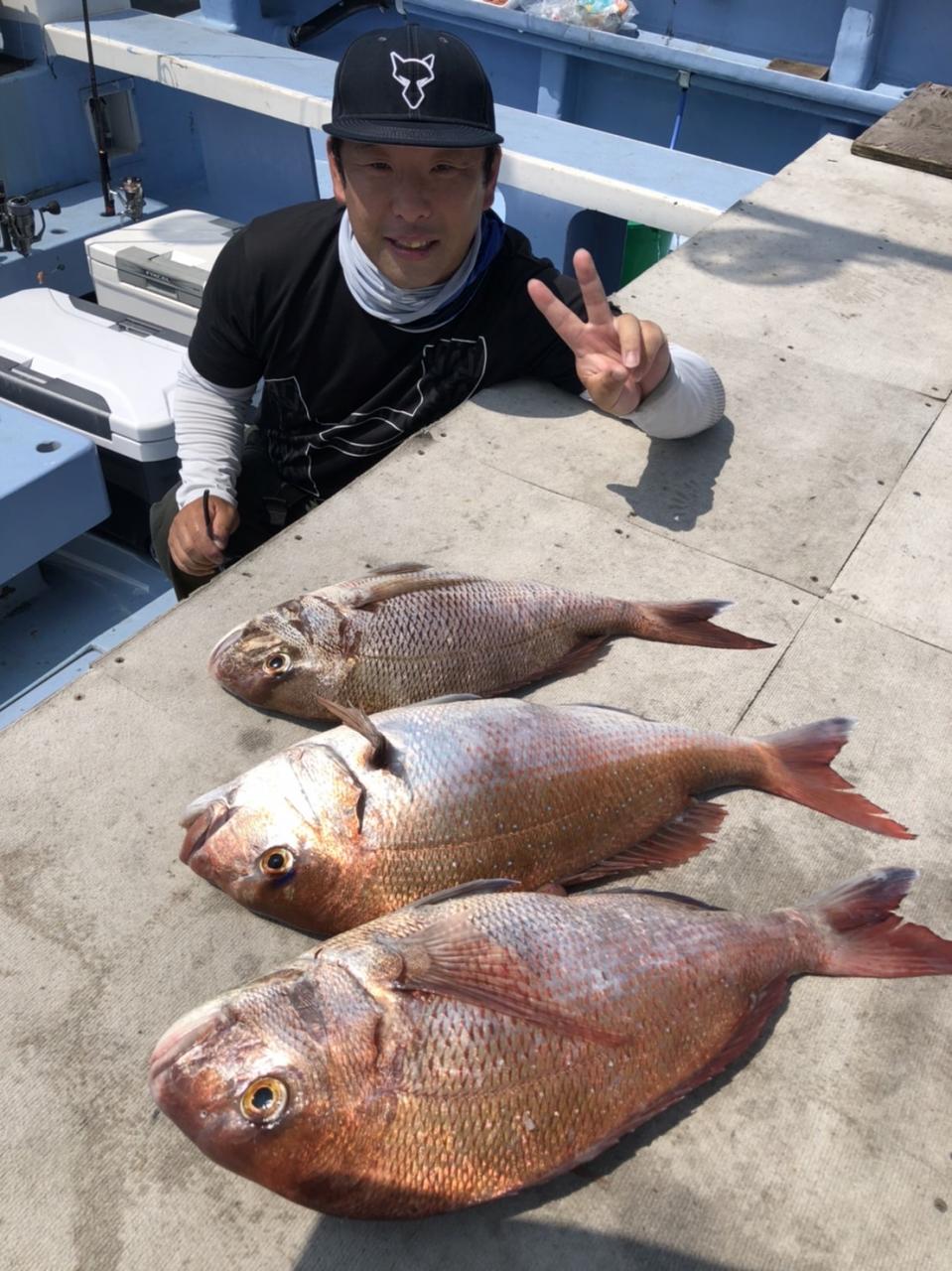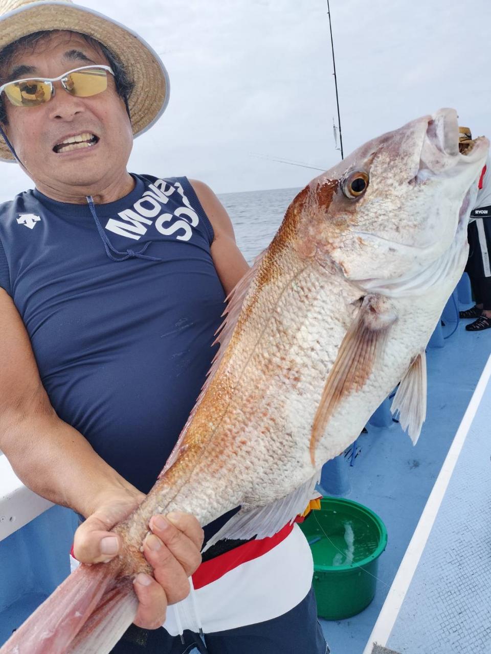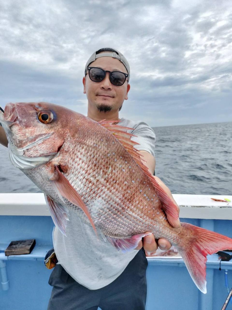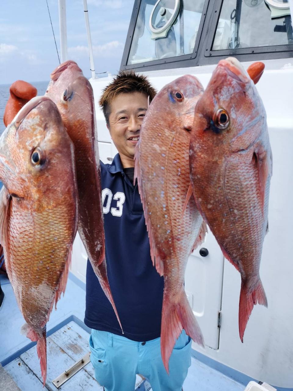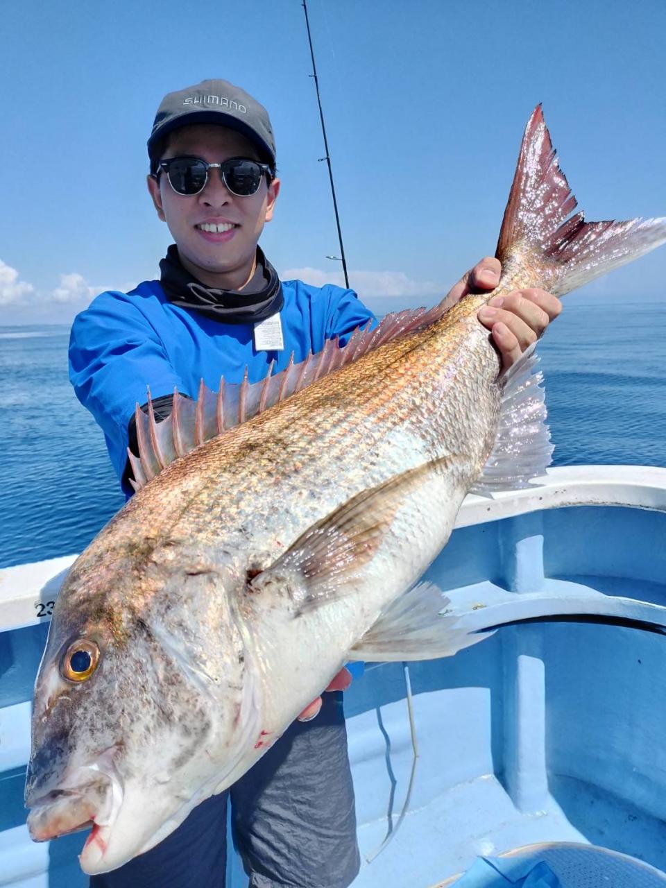今日は風と波もあって釣りにくい状況ではありましたがポツリポツリとアタリもあり、本命マダイをはじめ他ハナダイ、カサゴ、フグ、イナダ、ヒラメなどのゲストも上がりました。