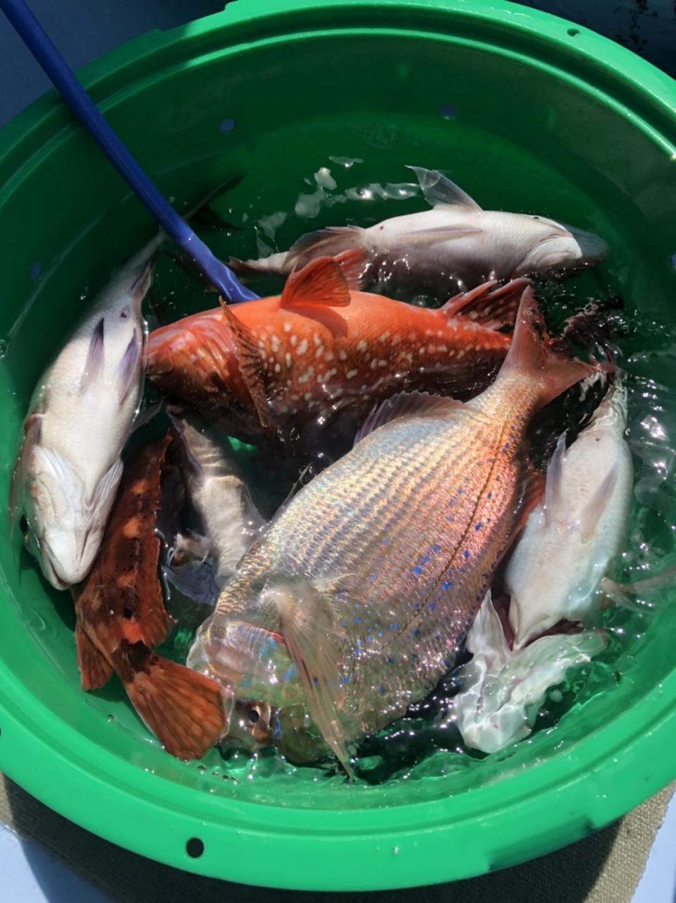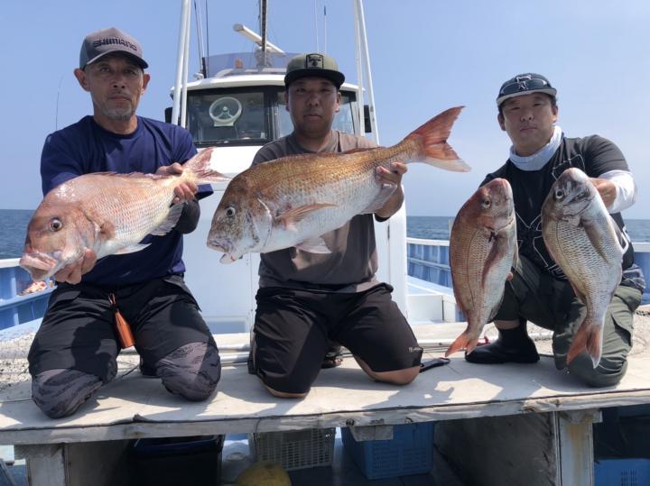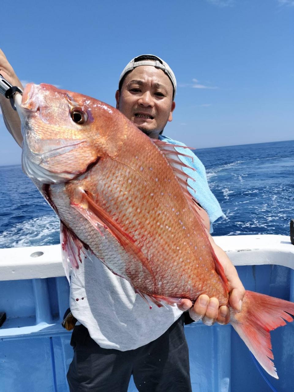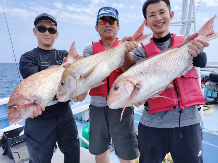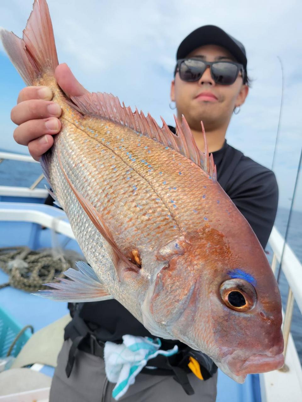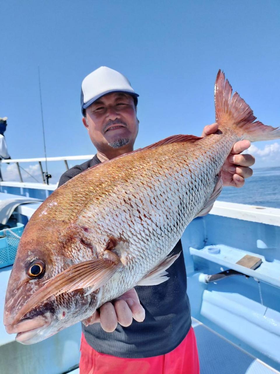 今日は風と波もあって釣りにくい状況ではありましたがポツリポツリとアタリもあり、本命マダイをはじめ他ハナダイ、カサゴ、フグ、イナダ、ヒラメなどのゲストも上がりました。