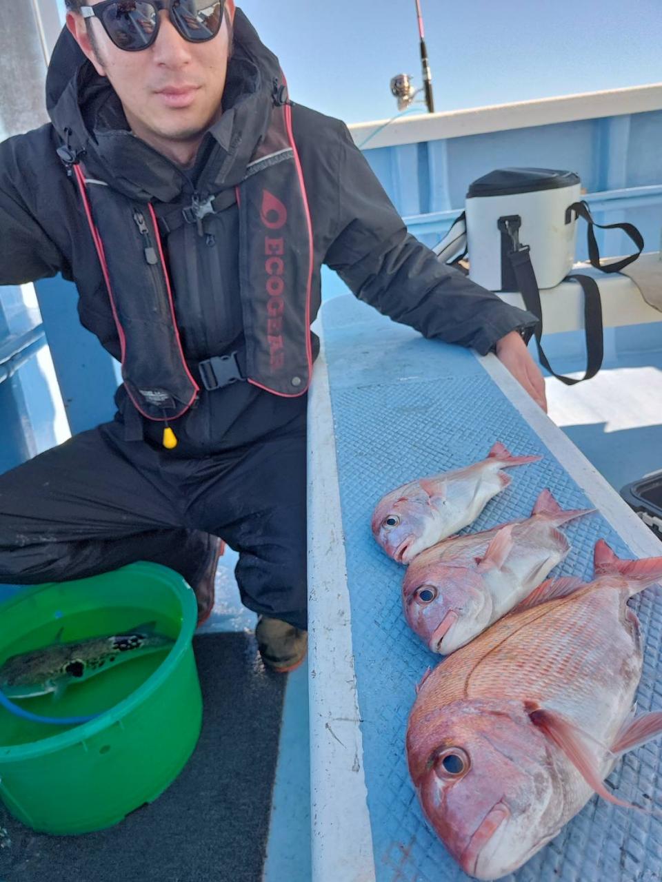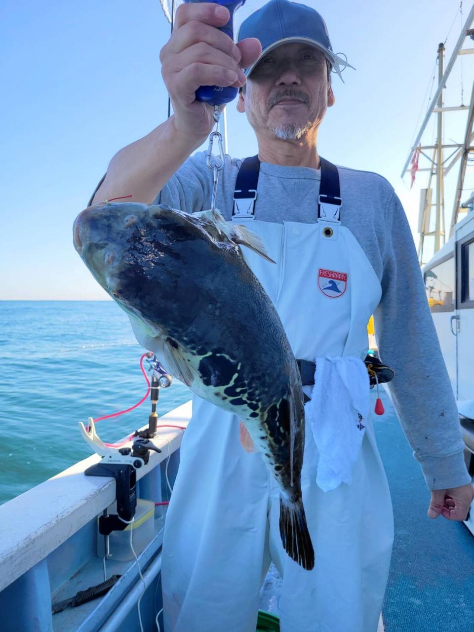 アタリ自体は多くないものの中盤にも最大4kgゲット!!バレてしまったものもありマダイの他4.5kgのトラフグや大型ヒラメも上がりました!