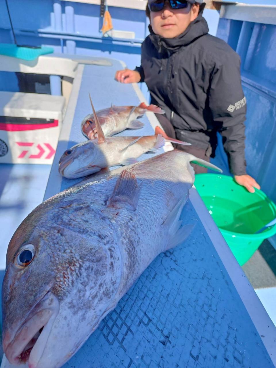前半は潮流れよくポツポツと掛かり始めました!型は良型で3〜4kgクラスも混じり数匹でもお土産になりました♪