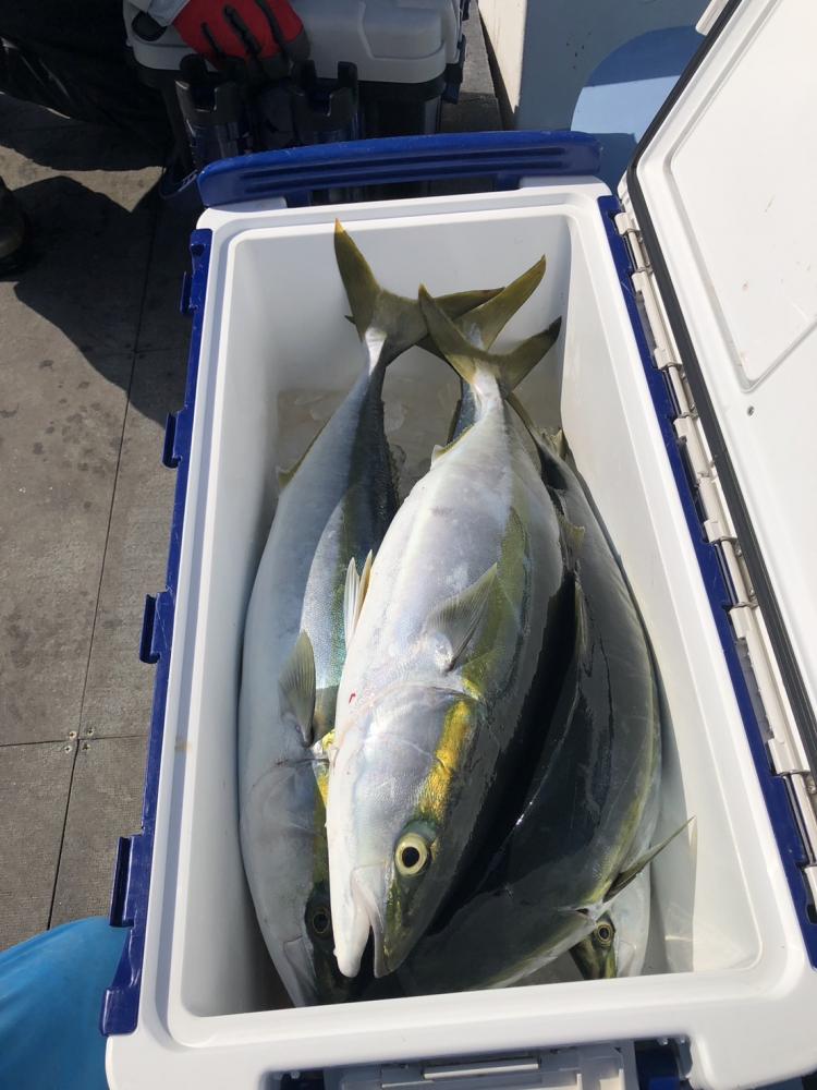 しかも上がれば良型主体ででっぷりとしたワラサが続々と上がってくれました。そこに型のいいヒラマサも浮上!お客様クーラー満タンになってご満足いただけたので9時半早上がりとなりました。