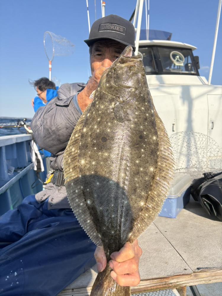 今日は朝のうち潮流れずヒラメの活性も低くなり厳しいかと思われましたが後半に風が出てくると流れ良くなりアタリ増えてきました!