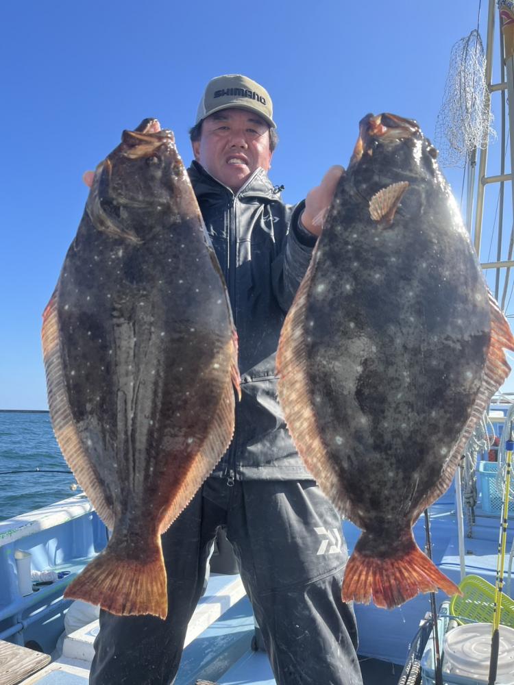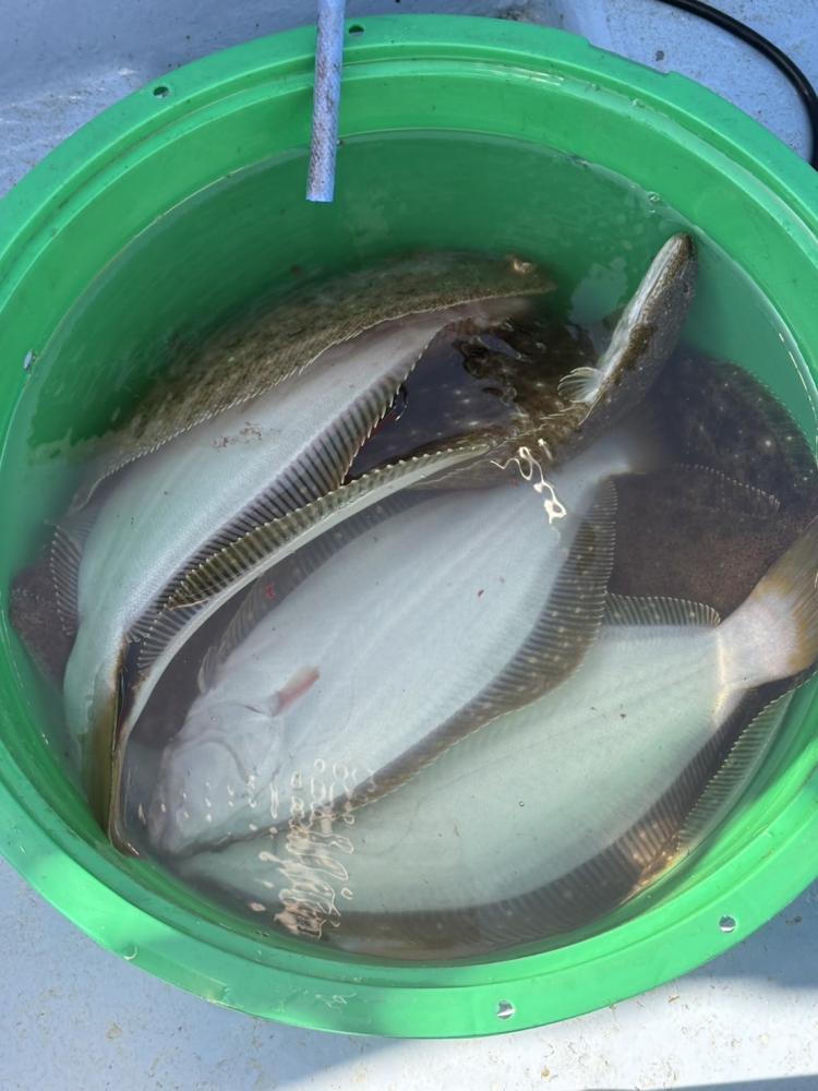 朝落ち込みからいきなりヒット!!終日潮流れよくヒラメの活性高く絶好調!!初心者の方も乗船されましたがアタリ多くクーラー満タンになりました♪
