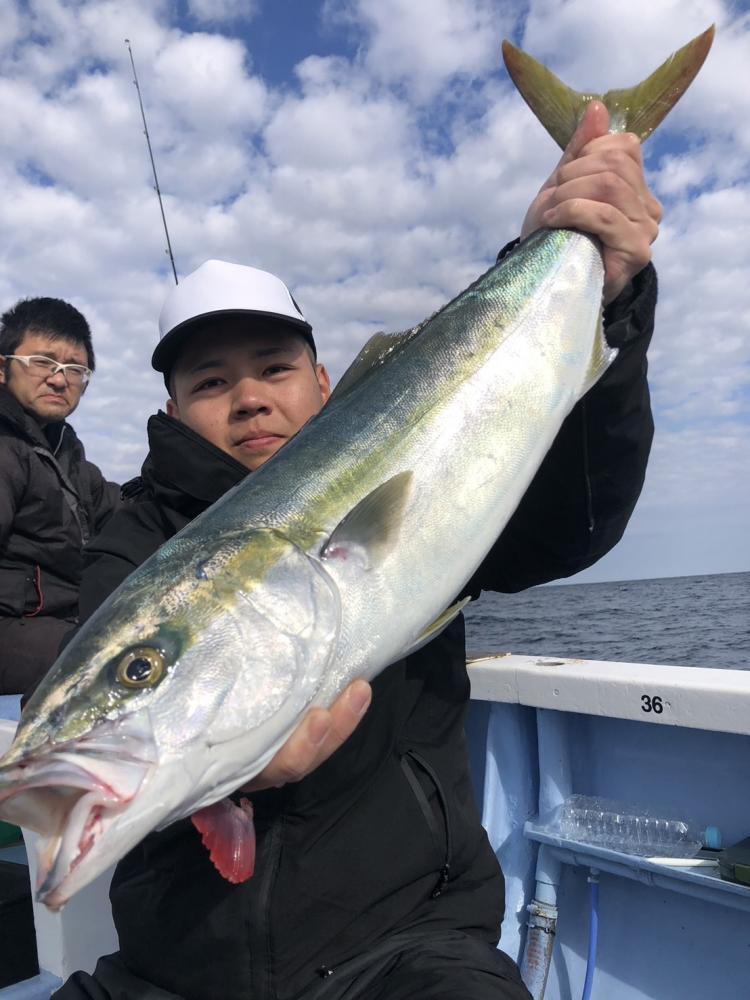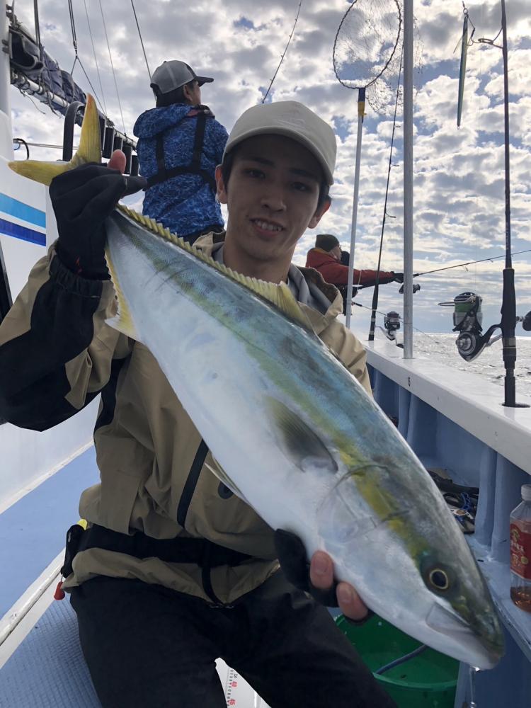 今日も前回好調だったポイントからスタート!ウネリあって心配でしたが早々に反応も乗れて良型ワラサゲット!!