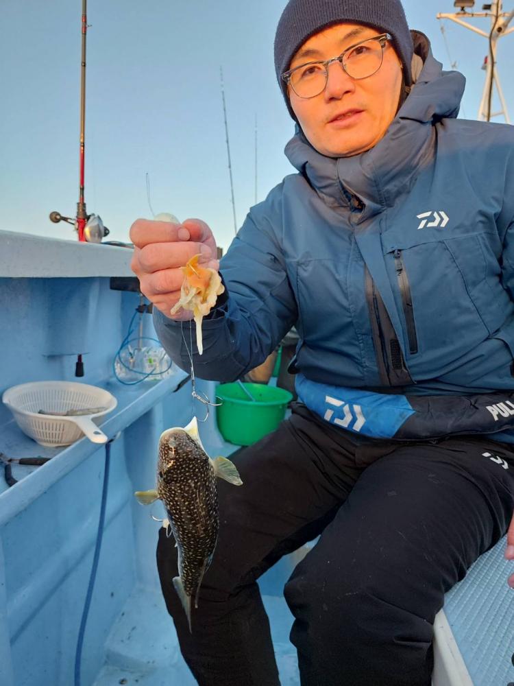 全体的にアタリは少ないものの朝イチ後も誘いの合う人はマダイヒット!途中O.Tプロ間違いなく大鯛というヒットあるものの痛恨のバラシ・・