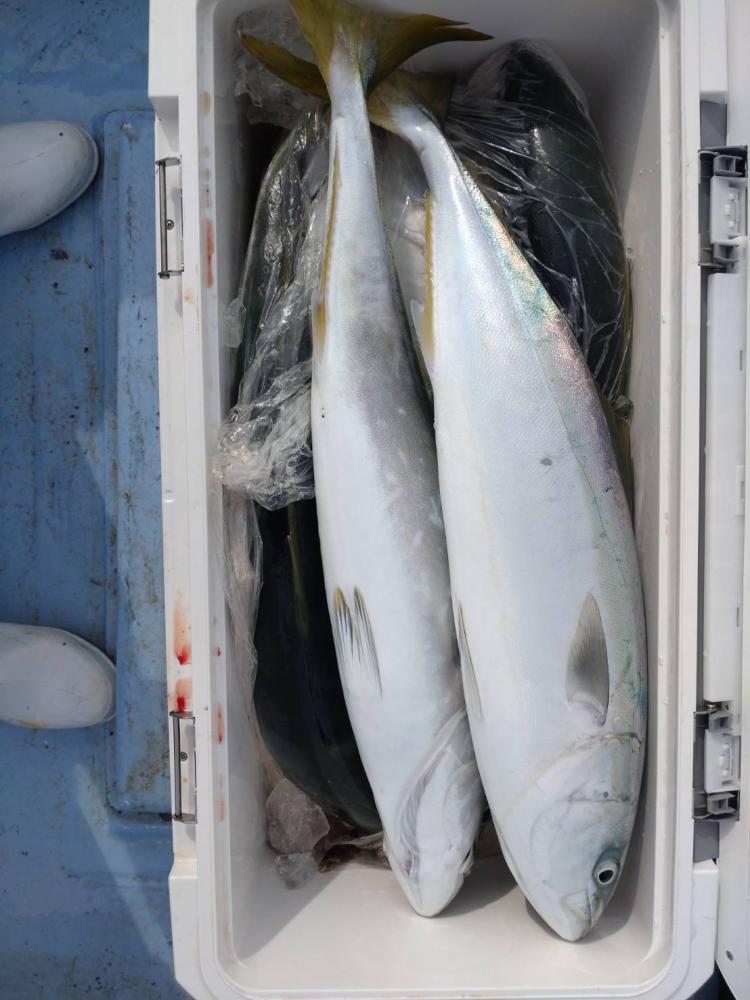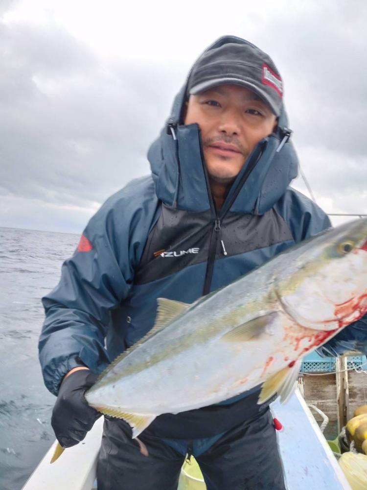 今日も前回好調だったポイントからスタート!ウネリあって心配でしたが早々に反応も乗れて良型ワラサゲット!!