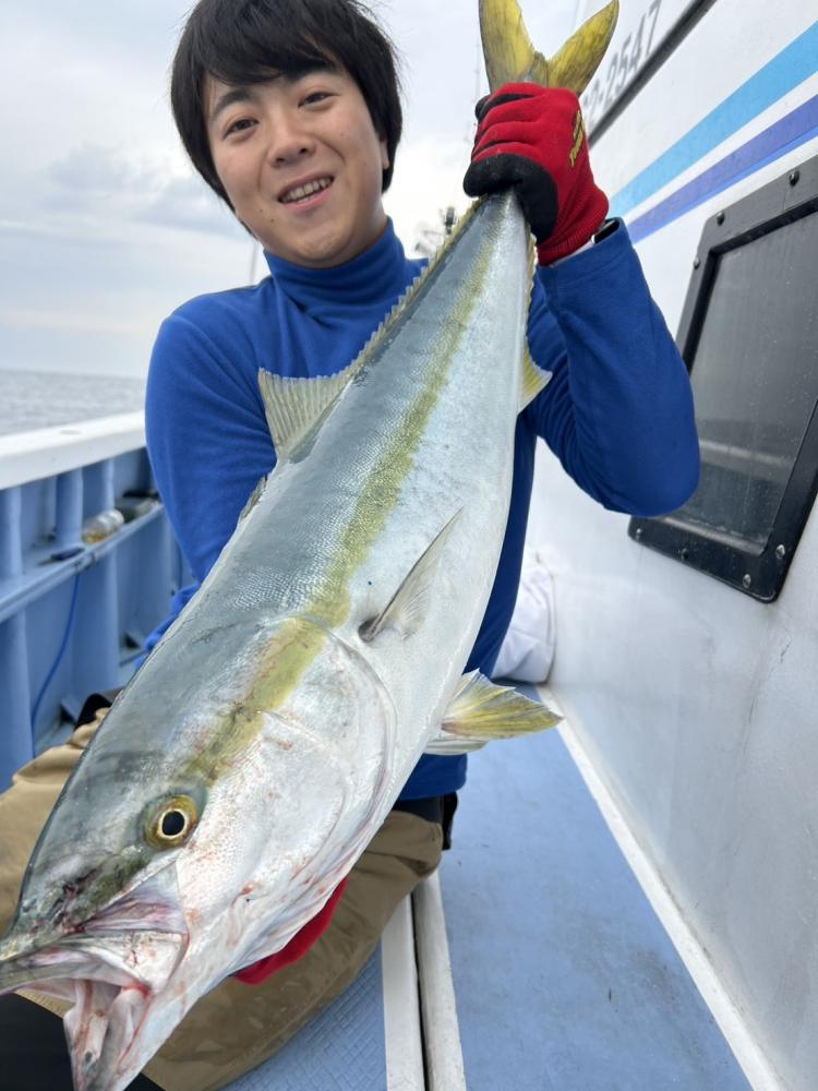 今日は朝から曇り陽気、前日と条件も変わって心配しましたがワラサの反応あり全員良型ワラサGET!