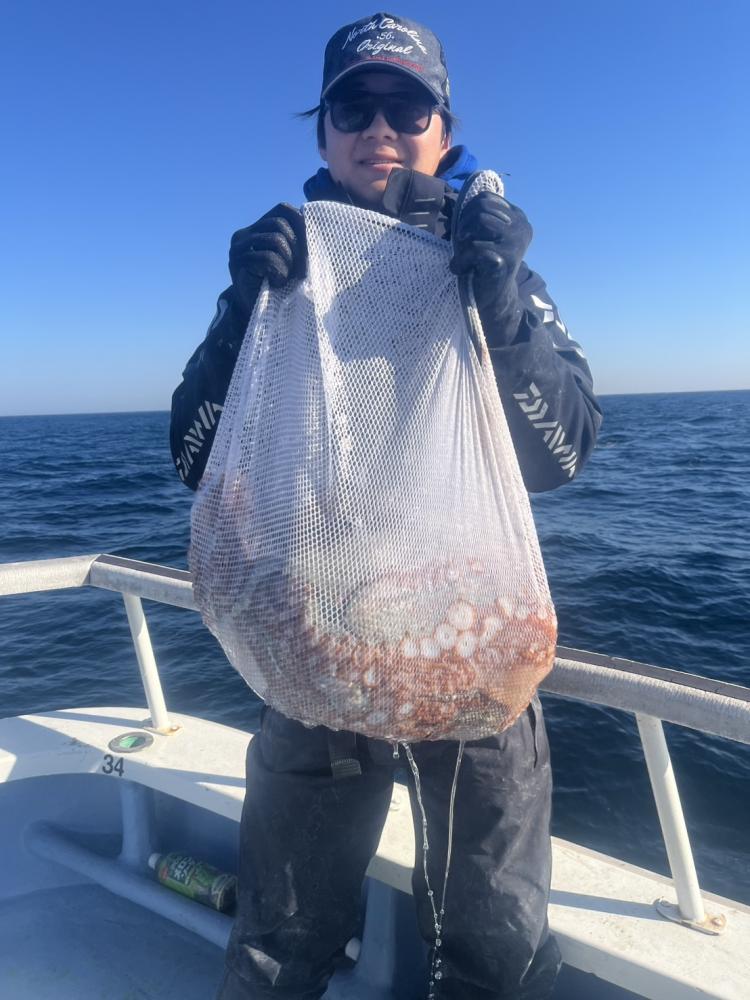 今日は潮流れ緩くもどこもポツリポツリとした掛かり、そこから日が出て風も少し出てくると船も多少流れるようになりパタパタと掛かる場面も出て来ました!